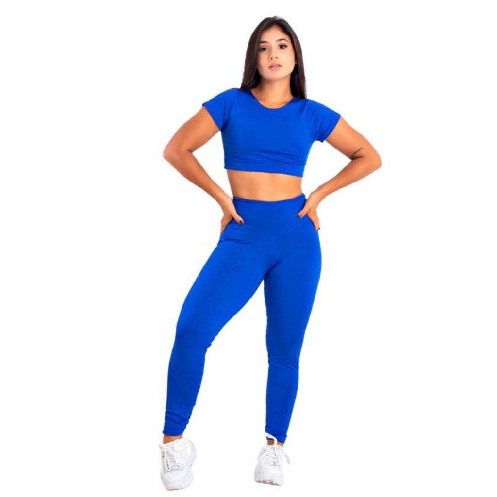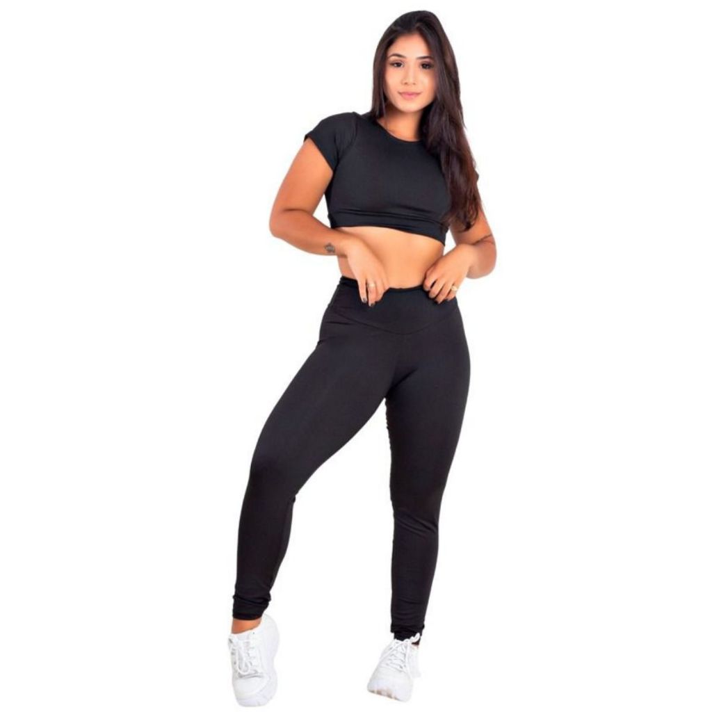 Conjunto Top Cropped Fitness Suplex Calça LeggingCintura Alta Academia Feminino Suplex Confortável