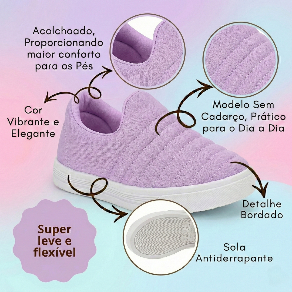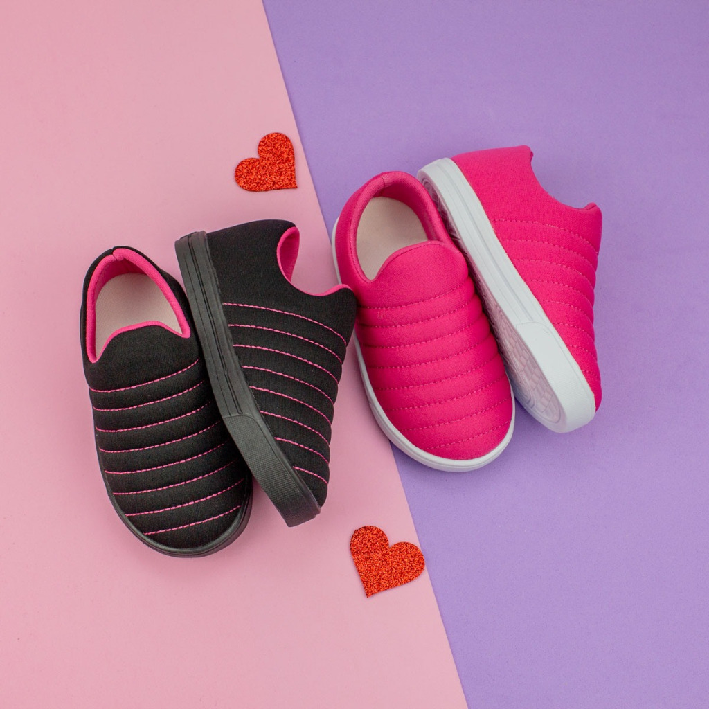 Kit 2 Tênis Infantil Menina Calce Fácil Slip On Com Sola Macia PVC Sem Cadarço
