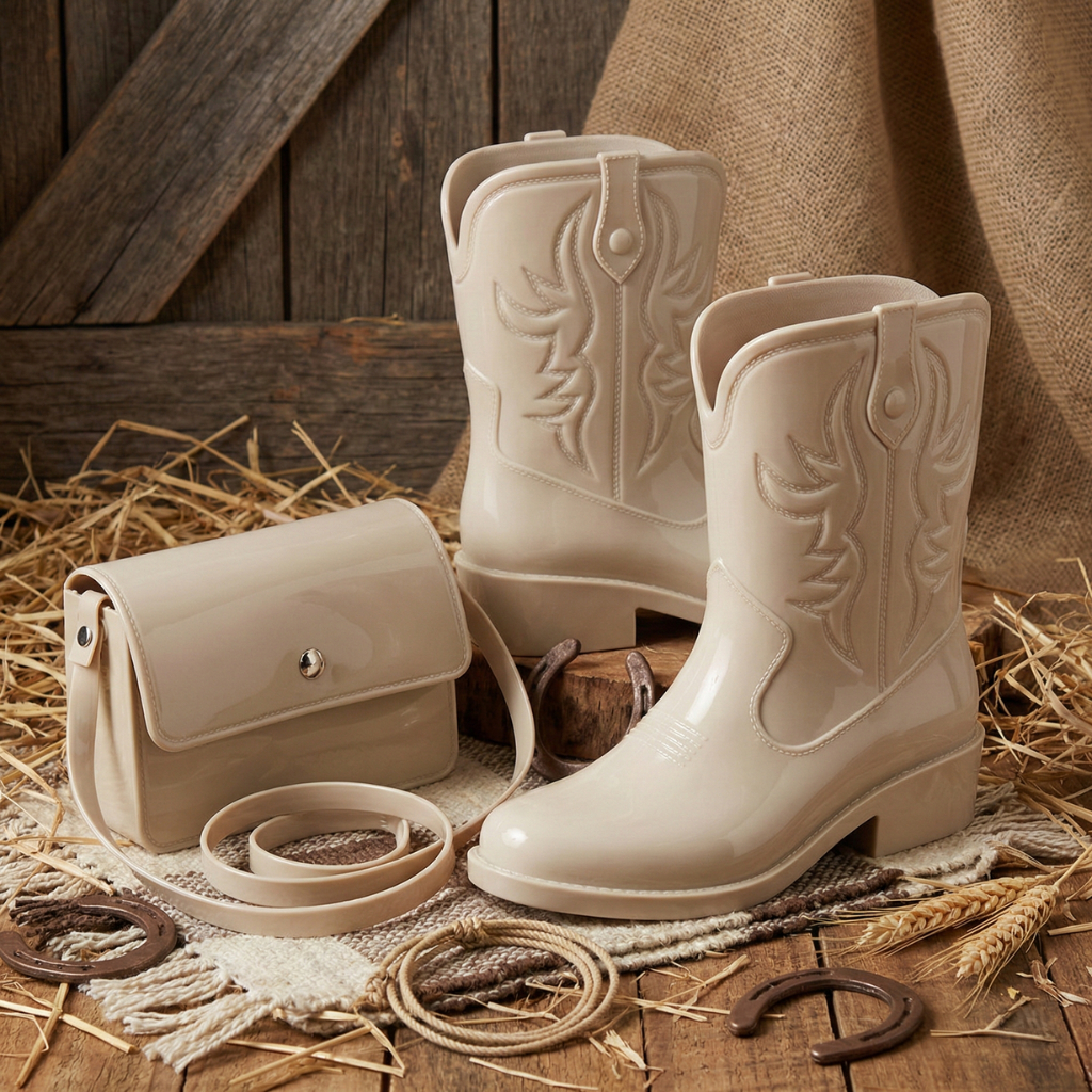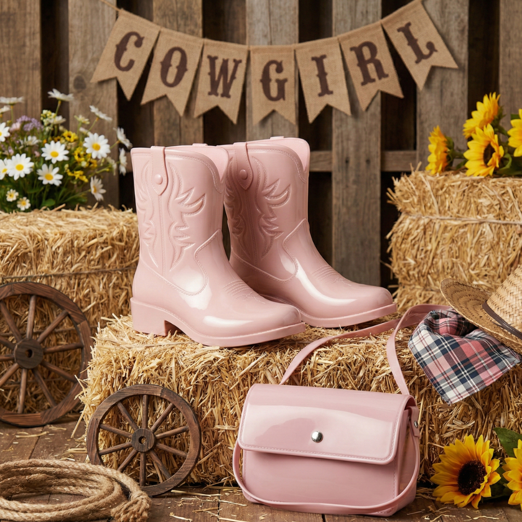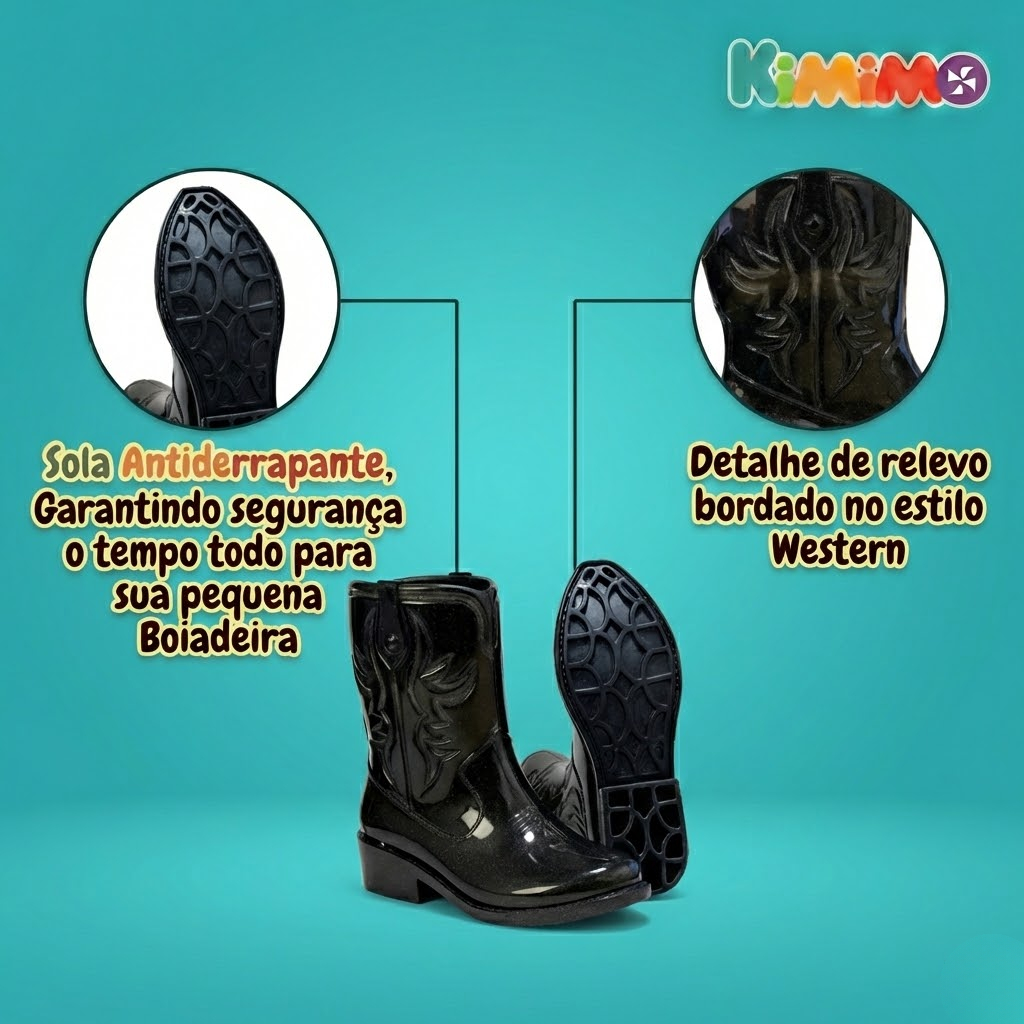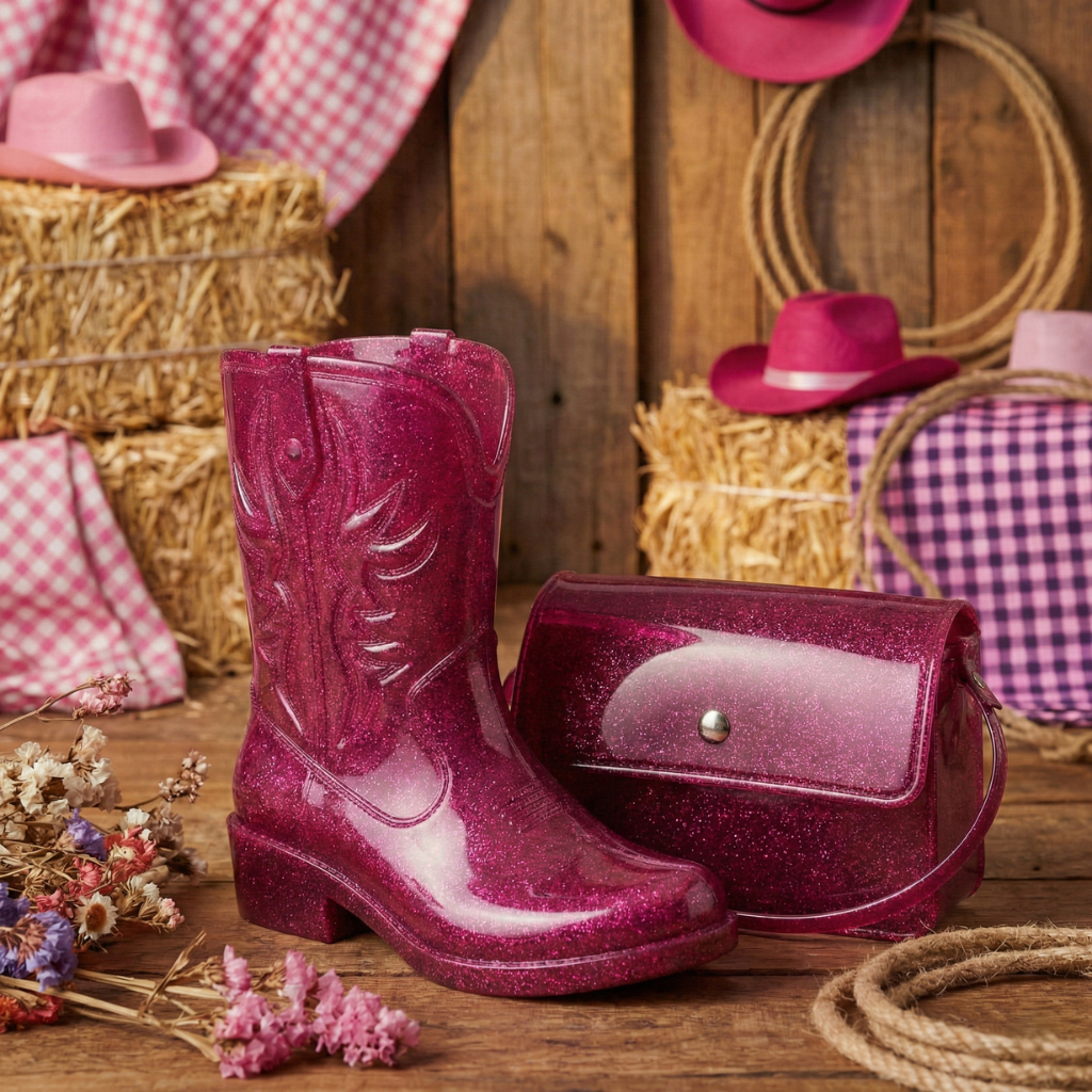 Kit Bota Texana Infantil Feminina Brilho + Bolsa Infantil Alça de Ombro