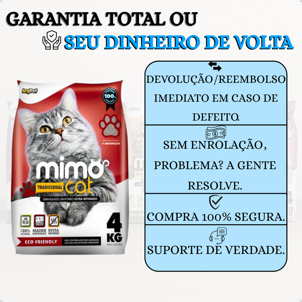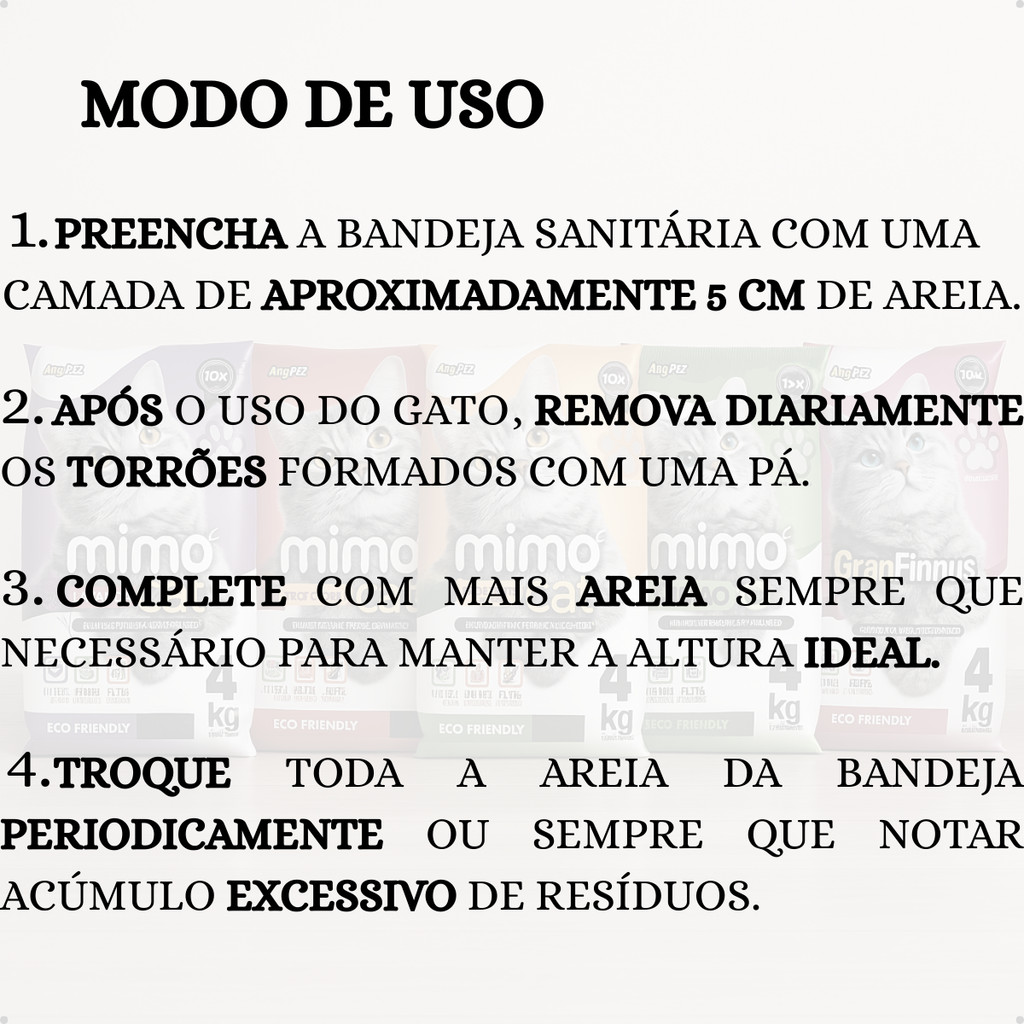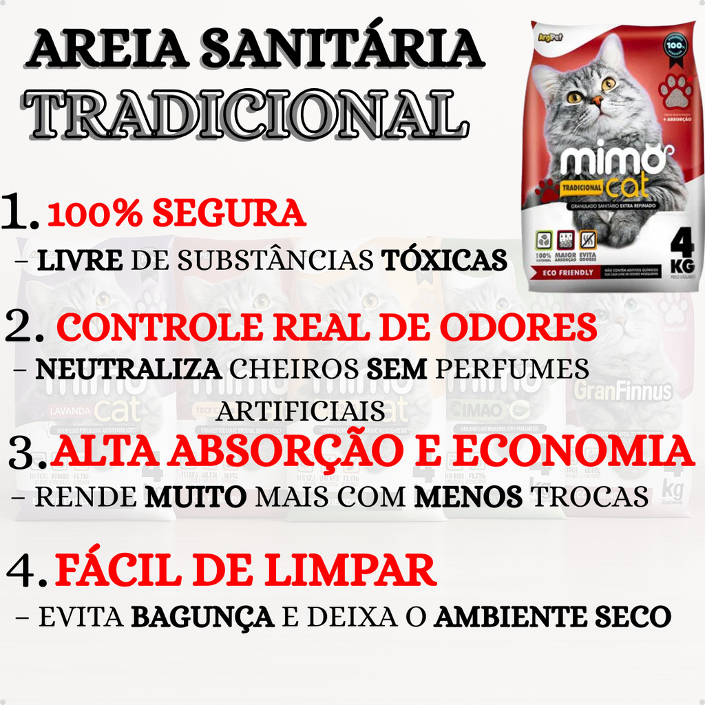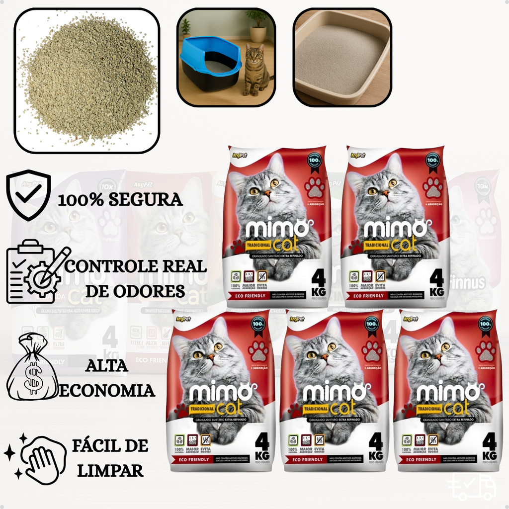 Kit 5 Areia Sanitária Higiênica Argila Natural para Gatos Grãos Médios Tradicional 20 kg Mimo Cat