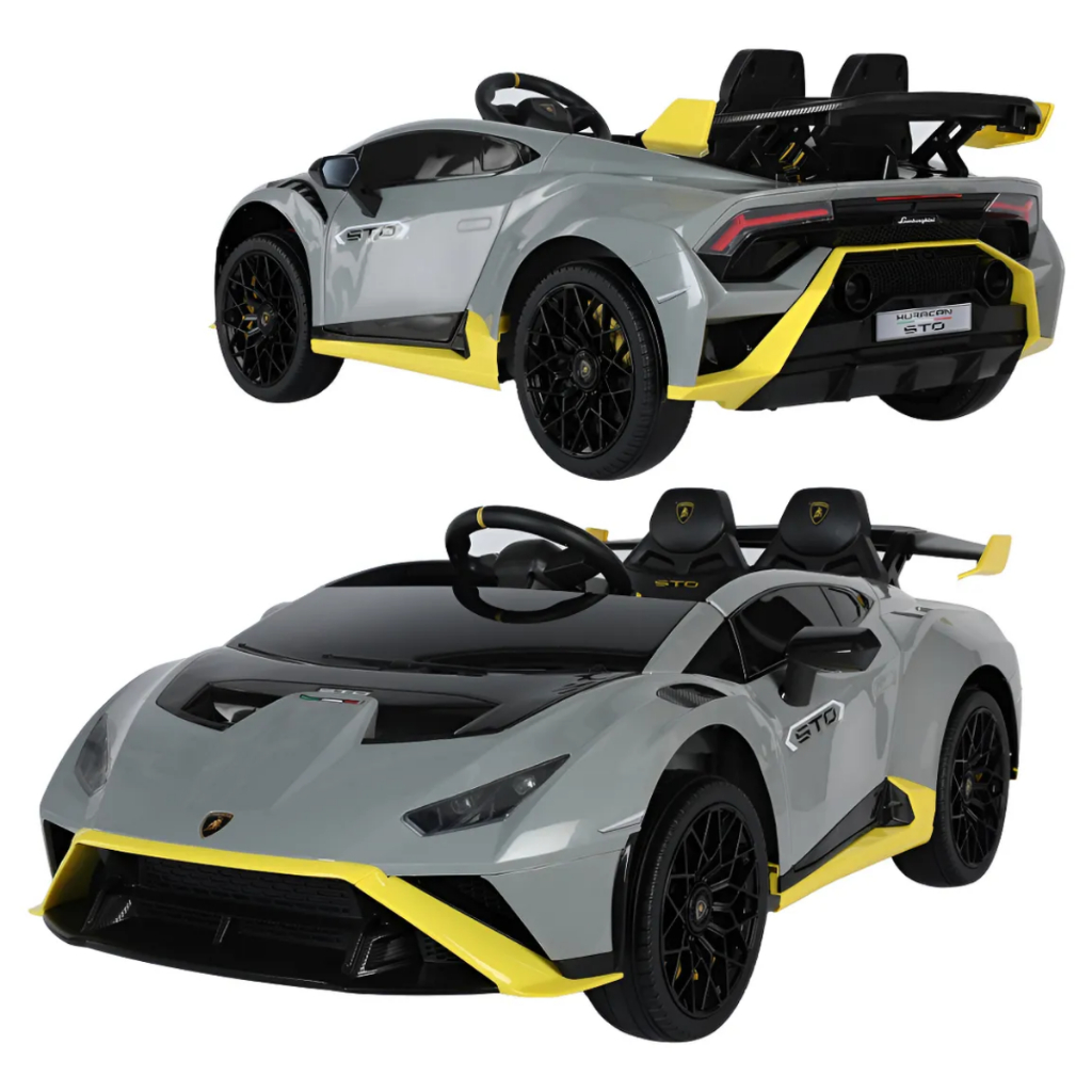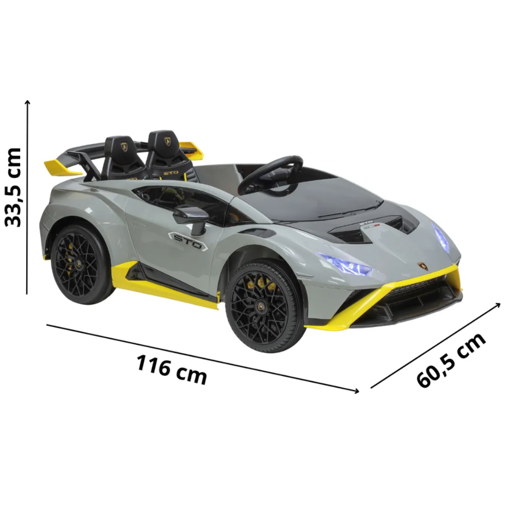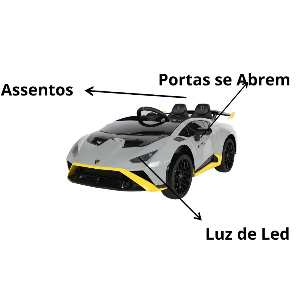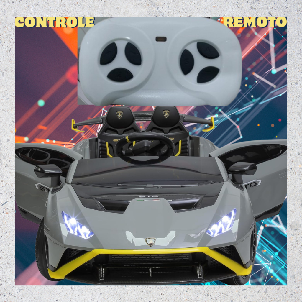 Carro Elétrico Infantil Lamborghini STO Cinza Carrinho Bateria Luz Som Brinquedo Luxo