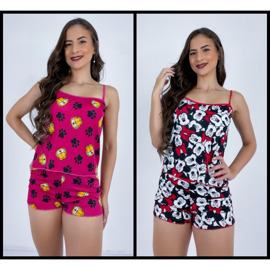 Kit com 2 Pijamas Baby Doll Feminino Verão Confortável
