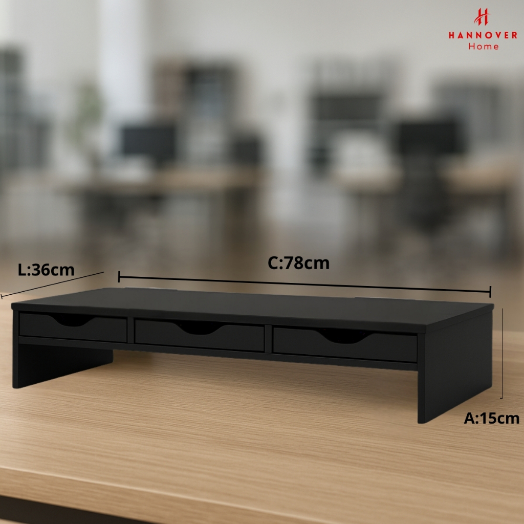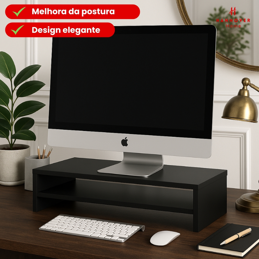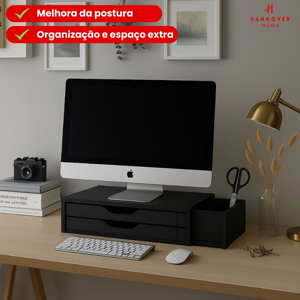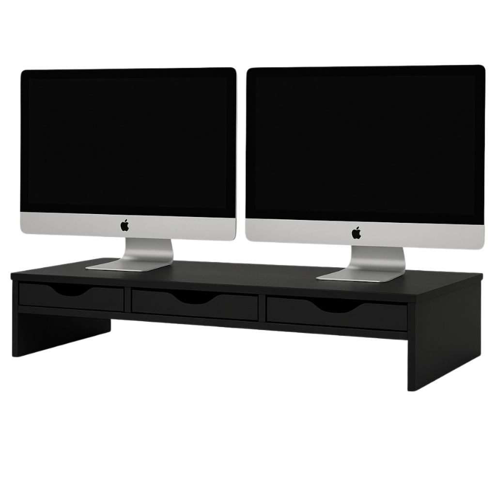 Suporte para Monitor de Mesa 2 Gavetas Escritório Ergonômico Mdf Black Piano