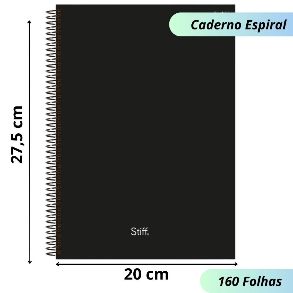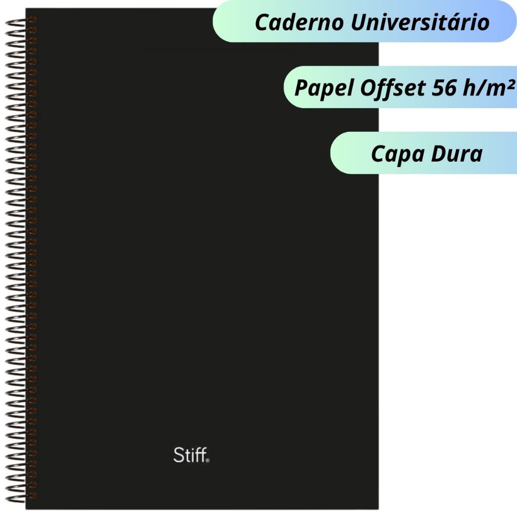 Kit 2 Caderno Capa Dura 160 Folhas 10 Matérias Escolar Universitário Preto