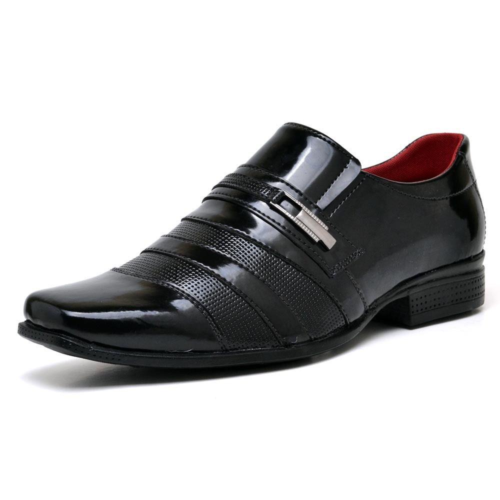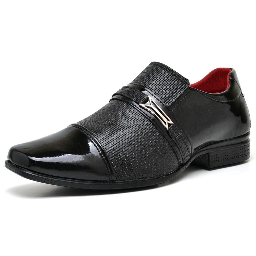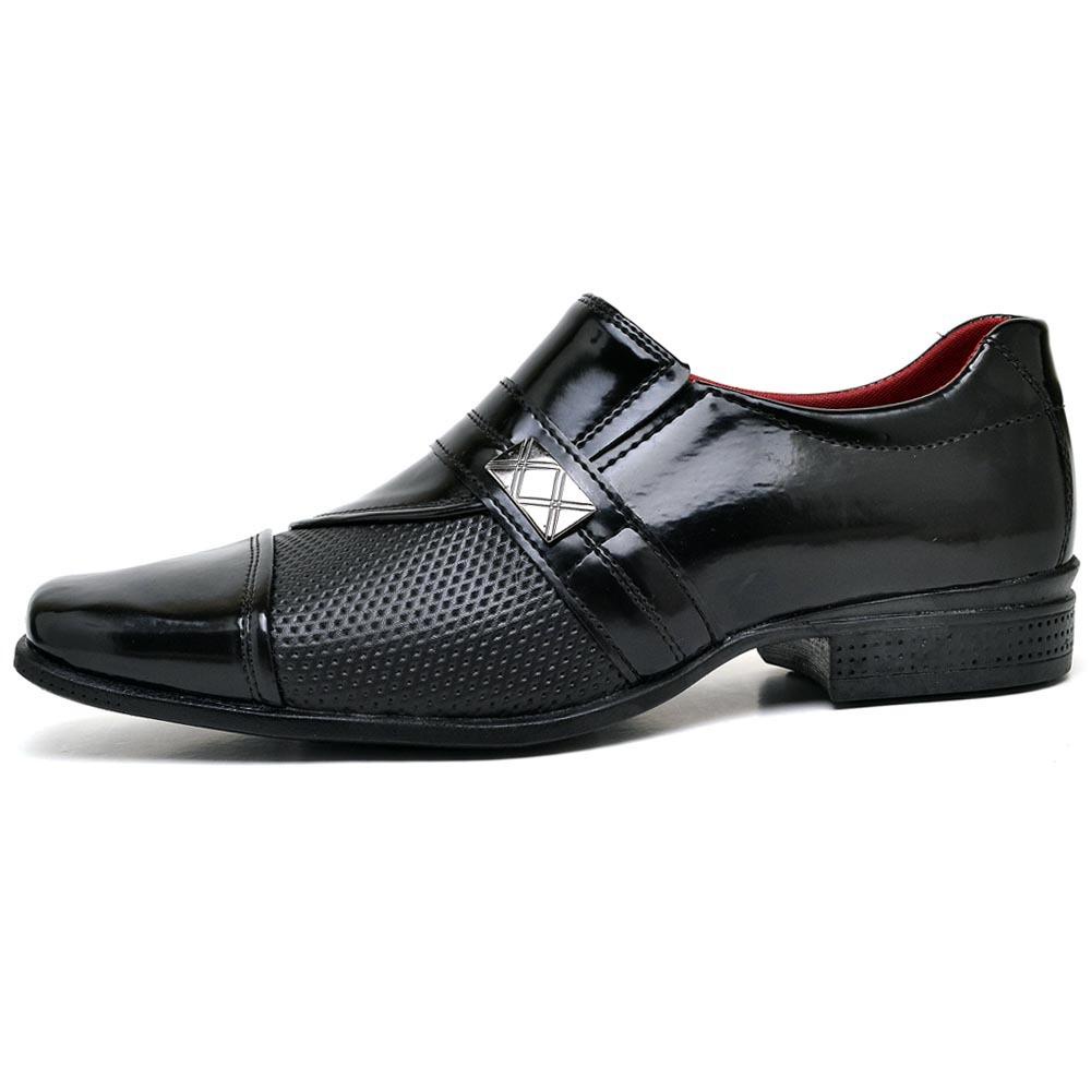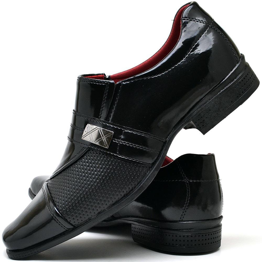Sapato Social Masculino Preto Verniz Brilhante com Fivela Elegante Confortavel