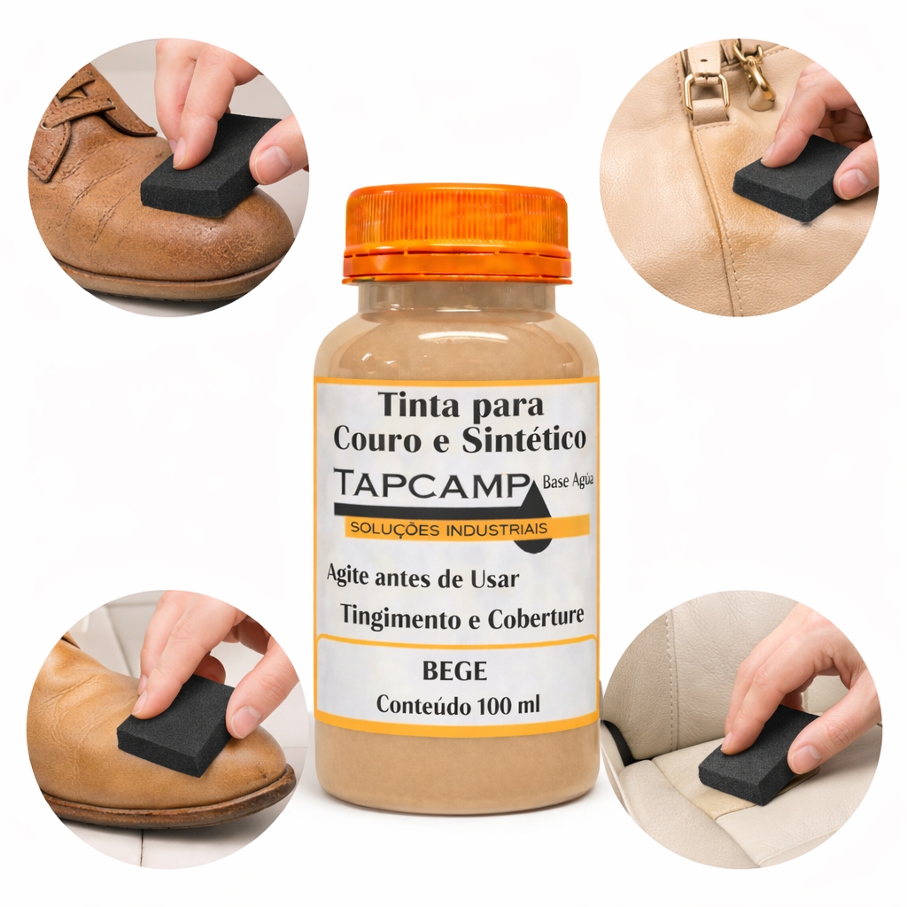 Tinta Couro bege Semi Brilho Restaura Sapato Bota banco de carro pneu 100ml