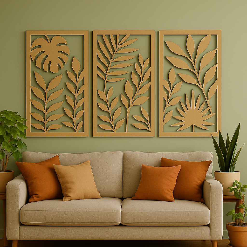 Quadros Decorativos de Folhas em MDF – Estilo Clean e Elegante Enfeite