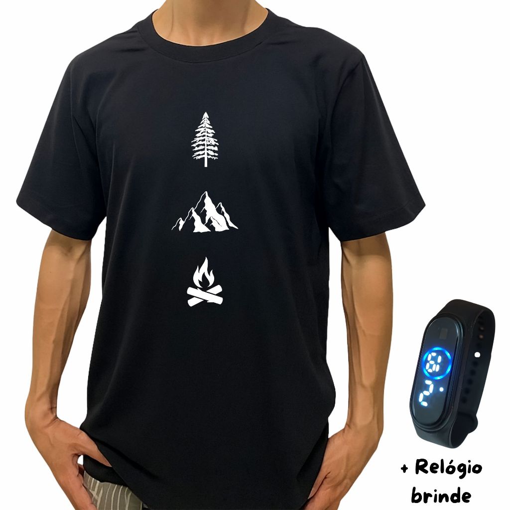 Camiseta 3ELEMENTOS Masculina e Feminina Estampada T-Shirt Descolada Algodão Casual + Relógio Brinde