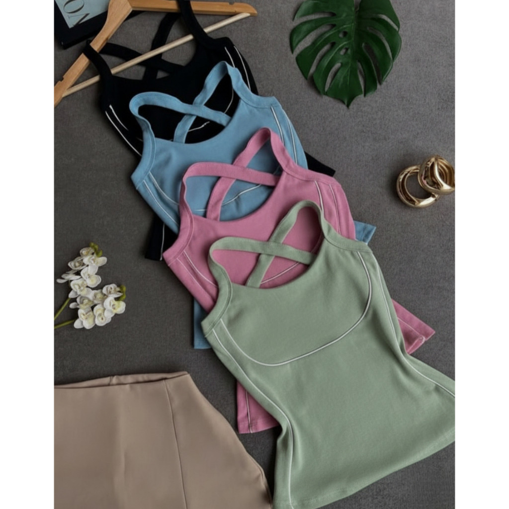 Blusa Alça Cruzada Regata De Alcinha Alta Qualidade