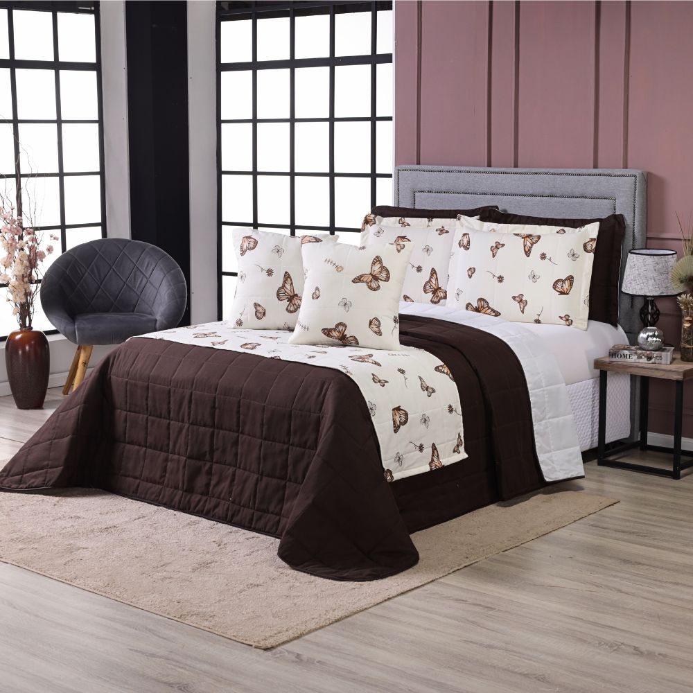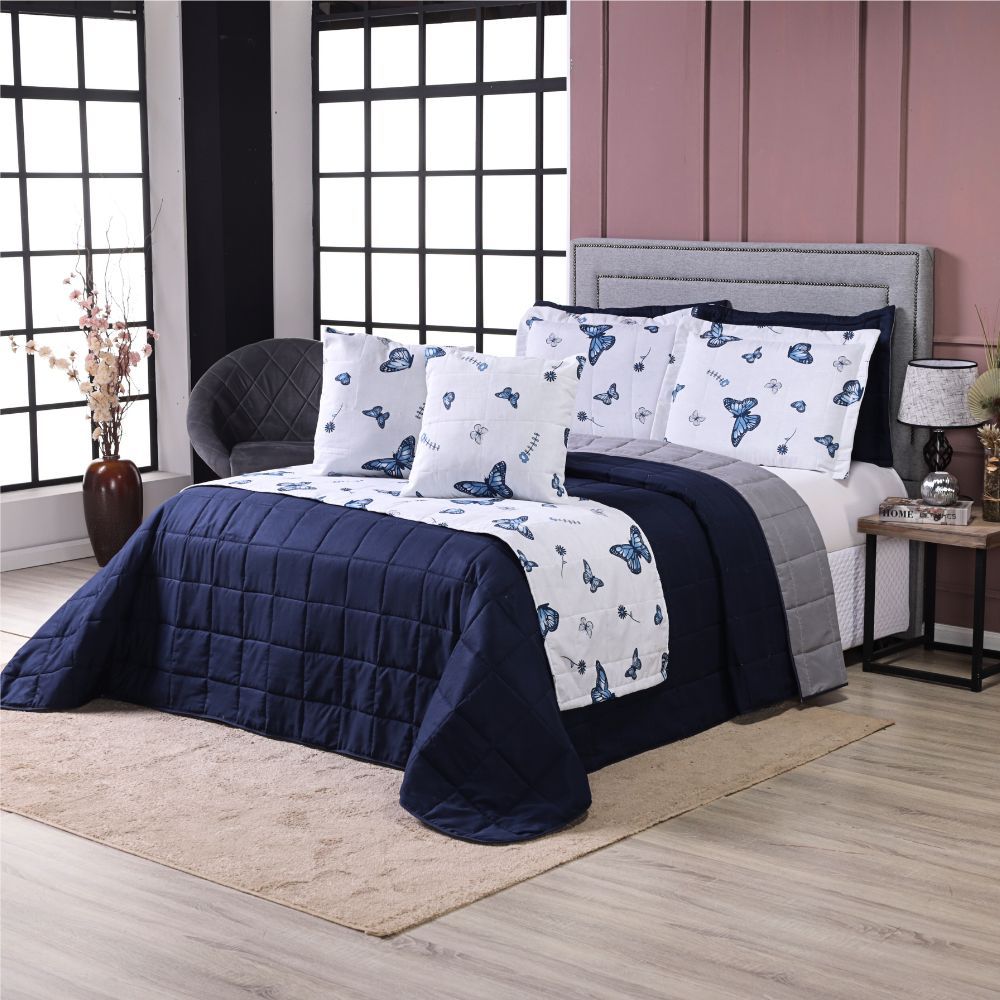 Kit Cobre Leito Colcha Casal Queen King 6 Peças Primor Dupla Face Percal 180 Fios