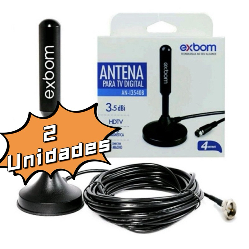Antena Digital Amplificada Interna e Externa 5 Metros Base Imã Prova d'água 4DBI HDTV/UHF/VHF