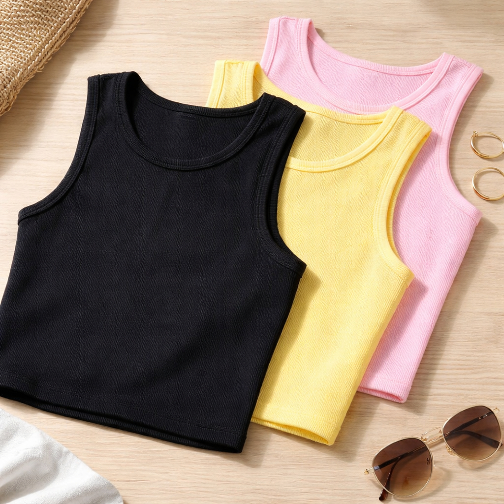 kit 3 Regatas Caneladas Premium Blusa Feminina