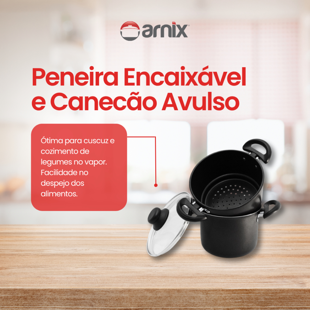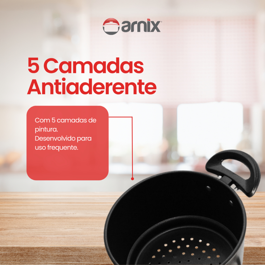 Panela a Vapor Teflon 3 em 1 Cuscuz e Legumes - Fervedor N°14 Preto