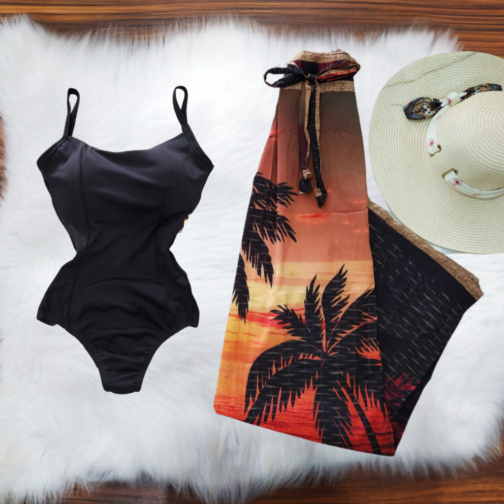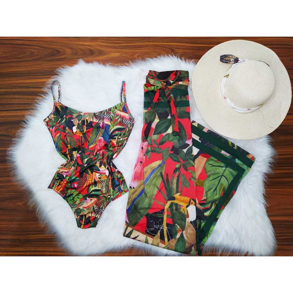 Conjunto Body Maiô + Pareô Saíde de Praia e Banho Kit Canga Moda Praia