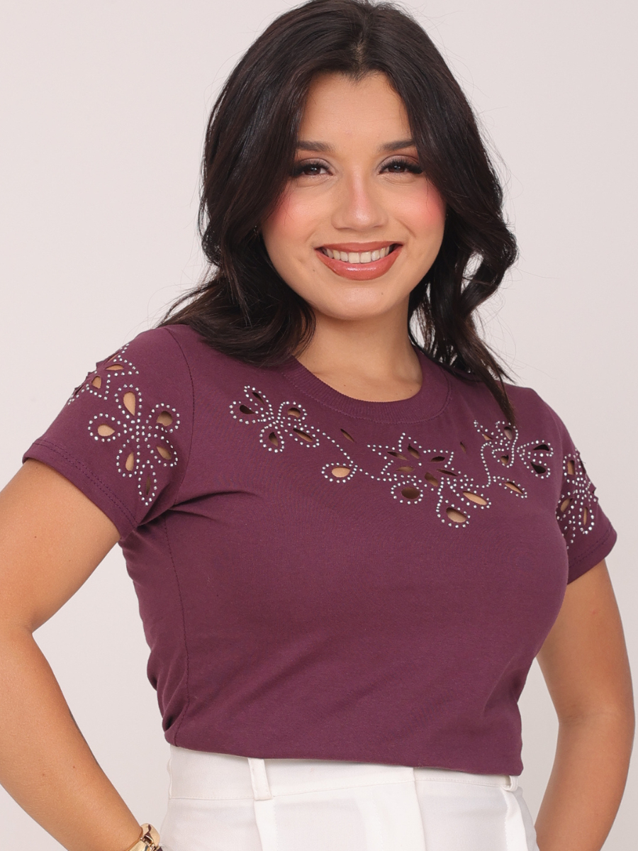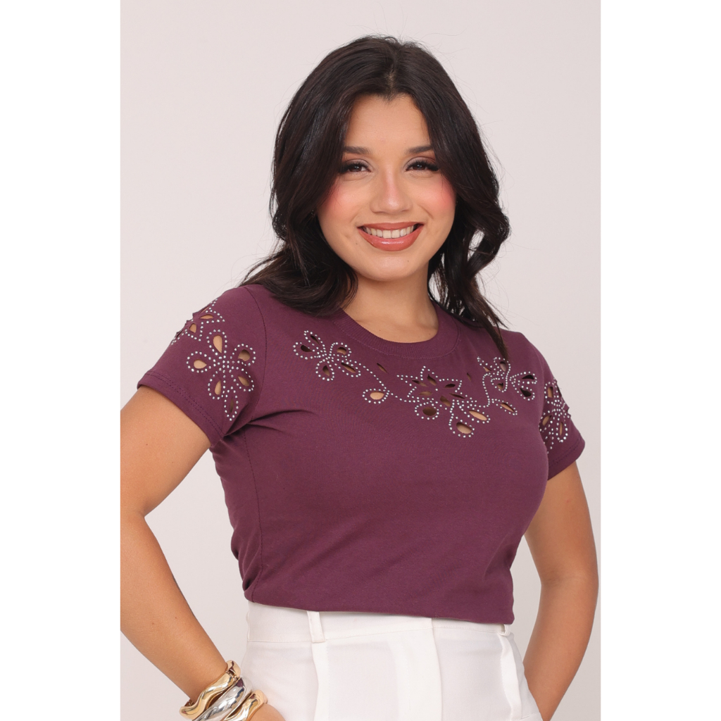 Blusa Feminina Luxo Moda Casual Tendencia Blogueira Estilosa 100% Algodão Premium Pedraria Brilho Strass Sexy Elegante