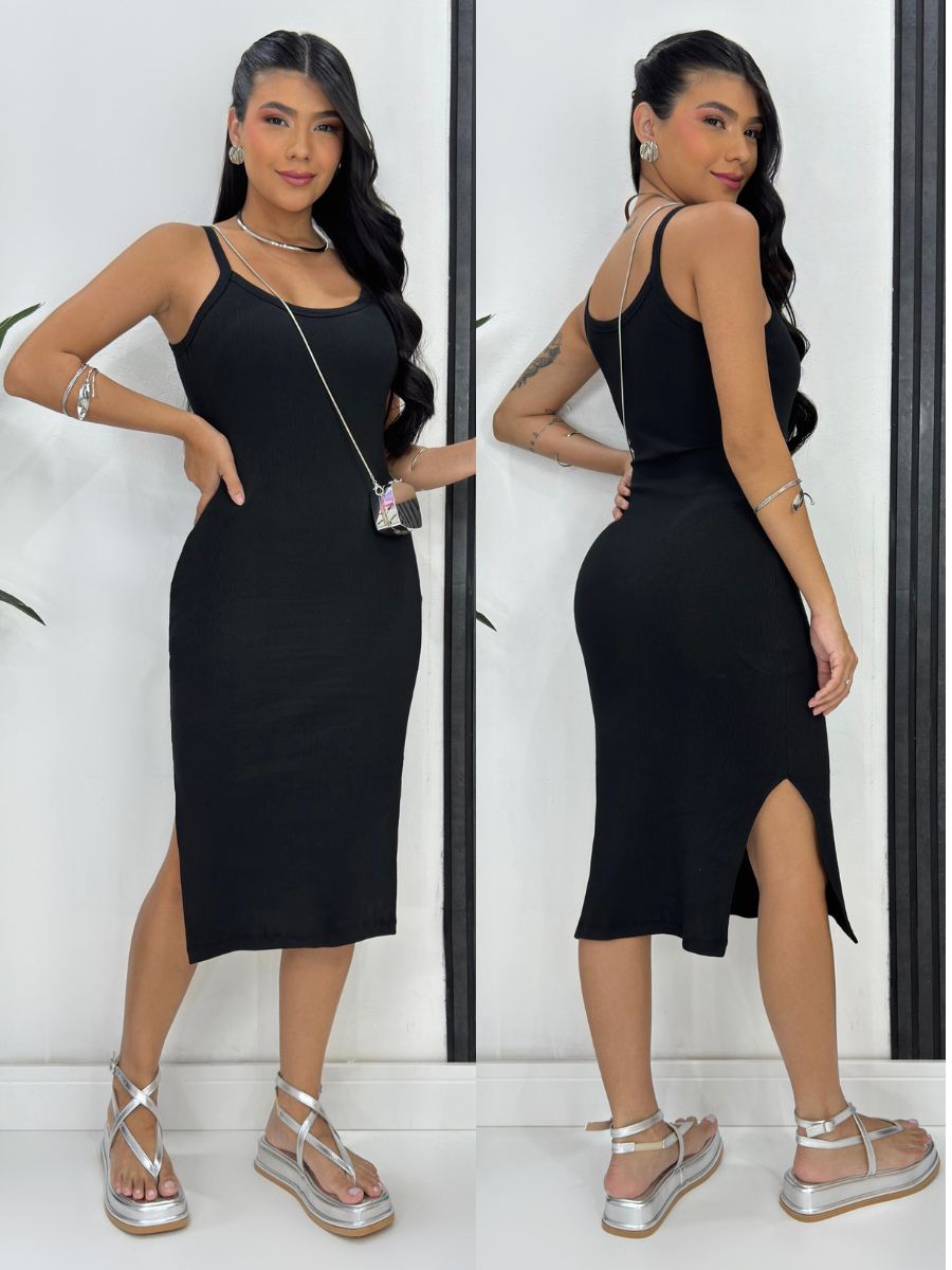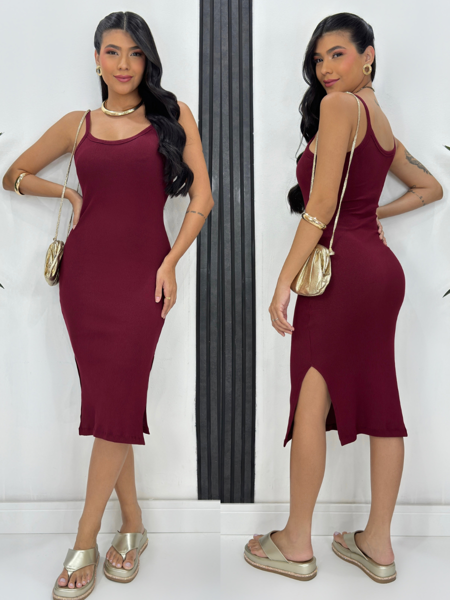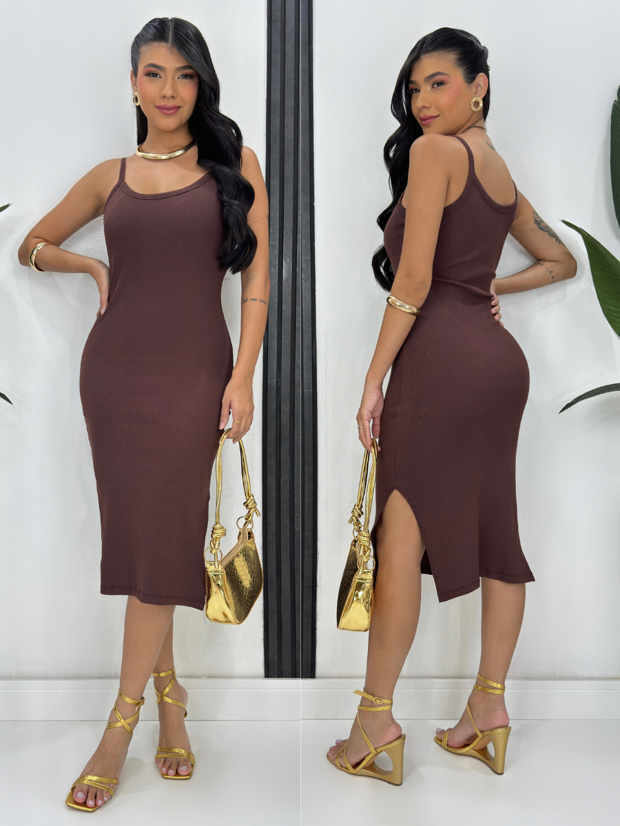 Vestido Mid Alça Ribana Canelada Algodão com Elastano com Bojo Fenda Lateral Festa Dia a Dia Casual Elegante Gestante