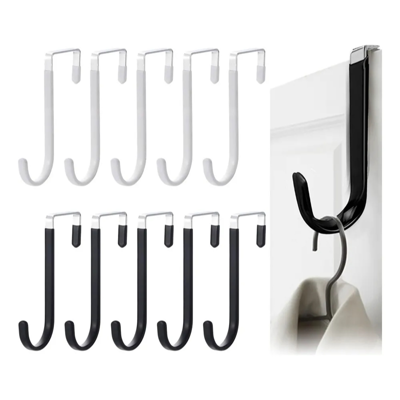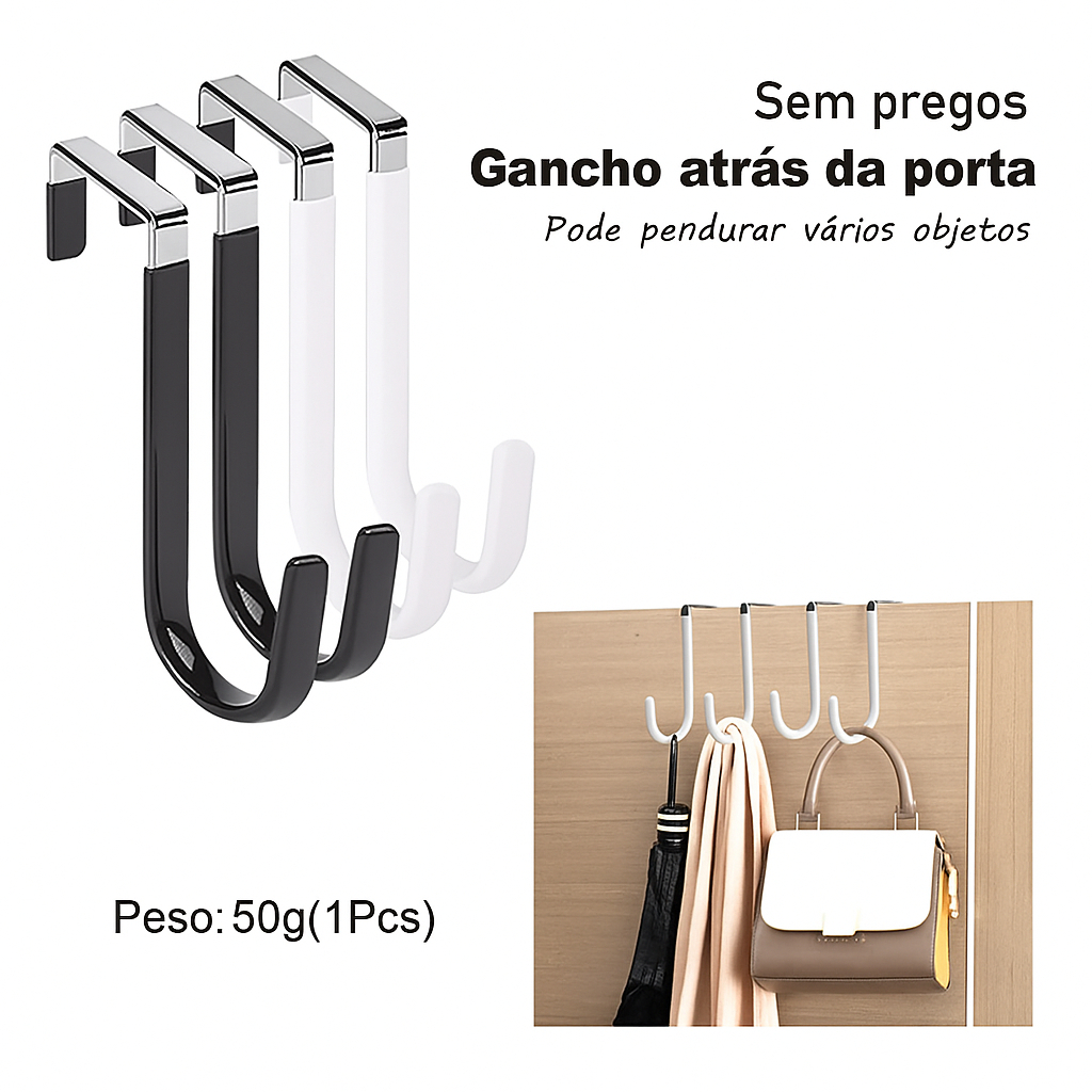 Gancho de Porta Metálico Emborrachado - Suporte Tipo Cabide Organizador Para Quarto e Banheiro
