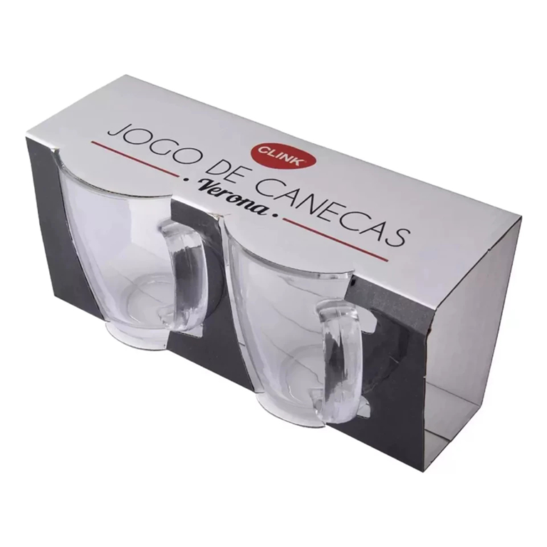 Kit 6 Canecas Transparentes de Vidro 350ml Jogo de Xicaras Verona Café Chá e Chocolate