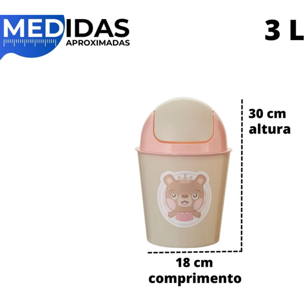 Kit Cesto de Roupa 30L, Banheira 20L, Lixeira 3L e Saboneteira com Escorredor Para Bebês Menina