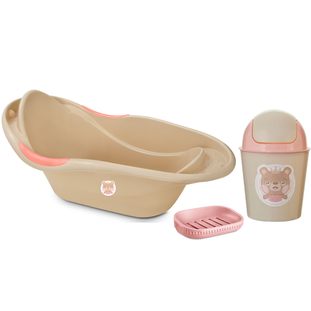 Kit Banheira 20L, Lixeira 3L e Saboneteira com Escorredor Para Bebês Menina Linha Baby