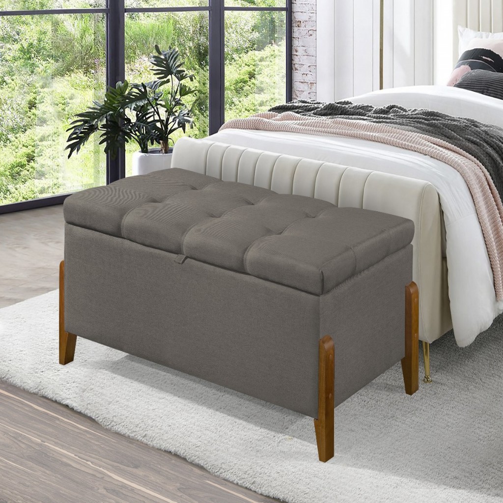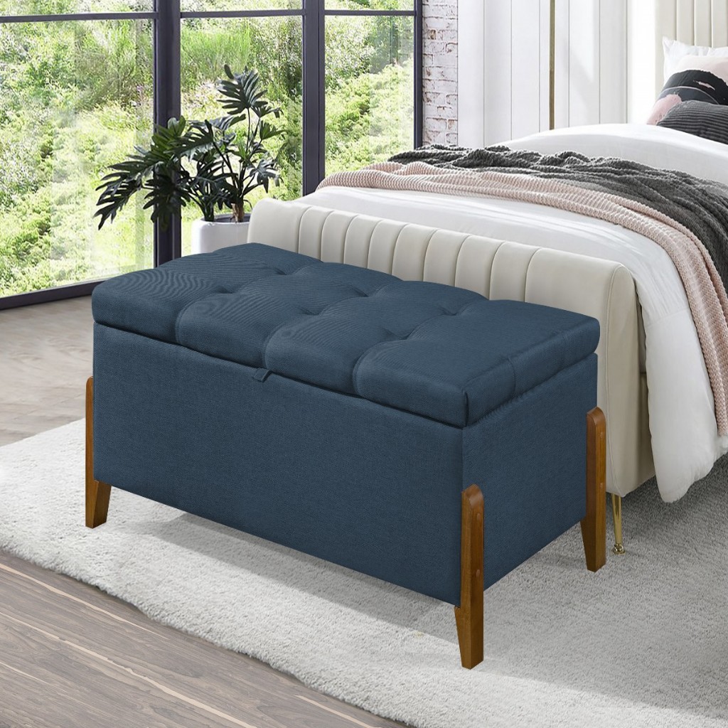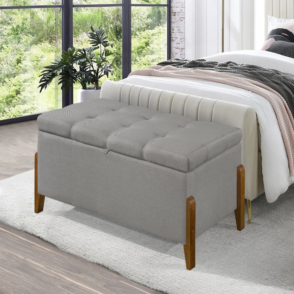 Organizador Sapateira Bau Recamier Viena 90cm Solteiro Linho Guarda Enxoval Cobertas Pes de Madeira