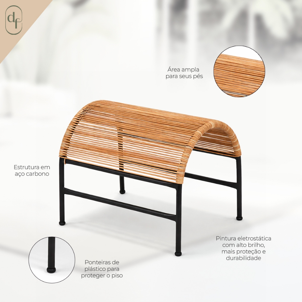 Apoio Para Pés Descanso Ergonômico para Cadeira Acapulco Varanda Jardim Área Externa Fibra Sintética