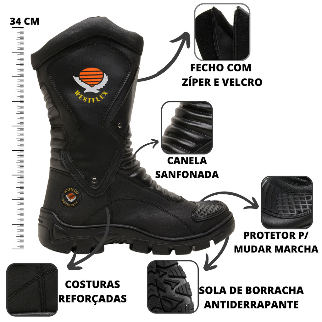 Coturno Cano Alto Masculino Bota Militar Motoqueiro Motoboy Super Confortável Ziper Lateral Proteção