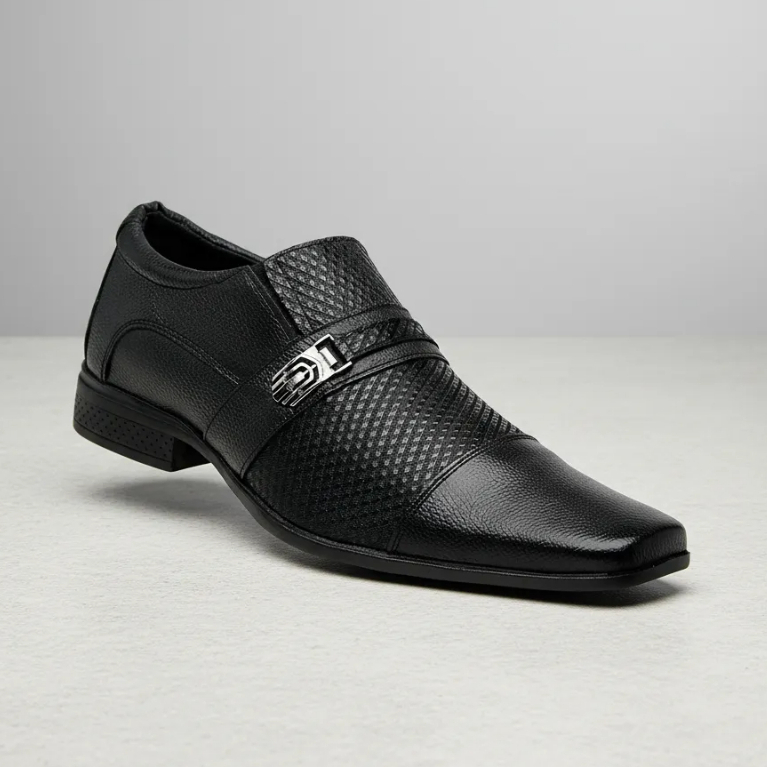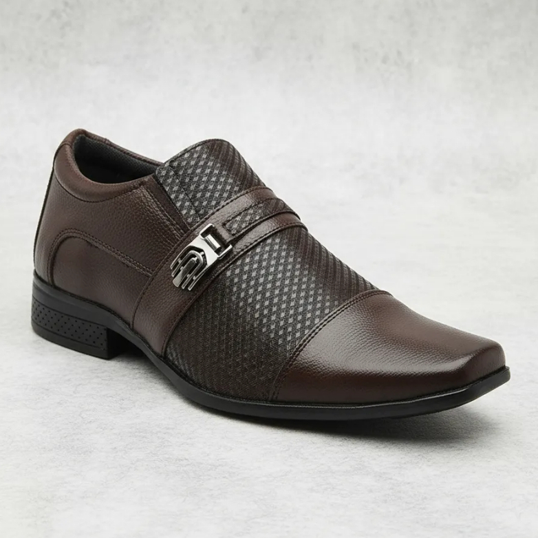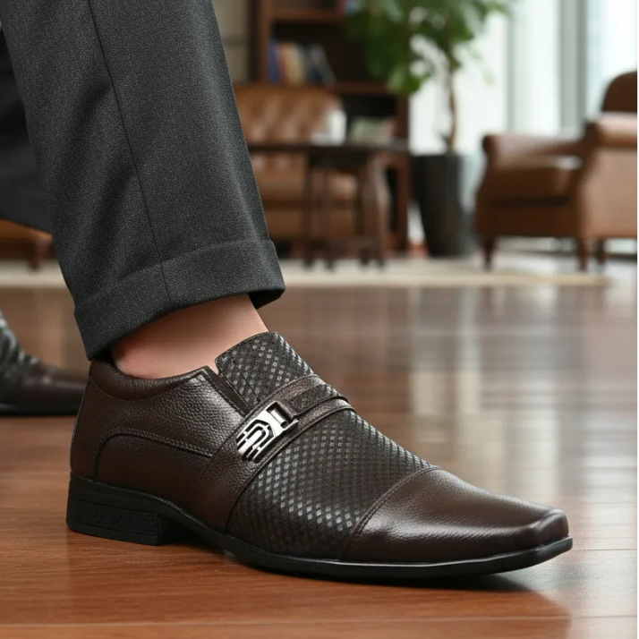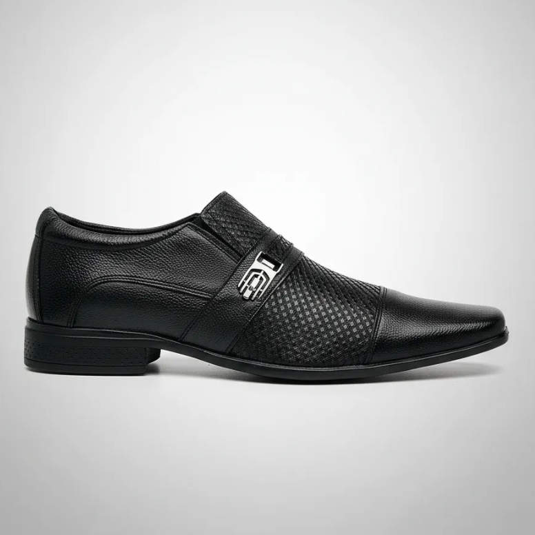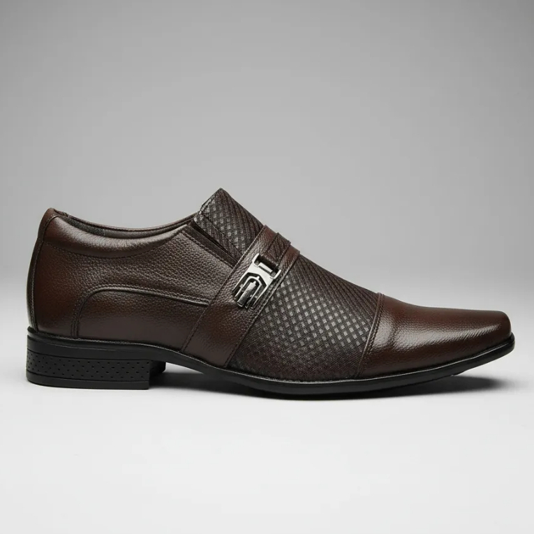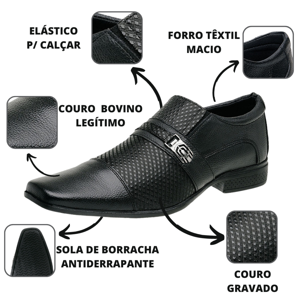 Sapato Social De Couro Resistente Masculino Sola Costurada Macio Elastico Bico Quadrado Confort