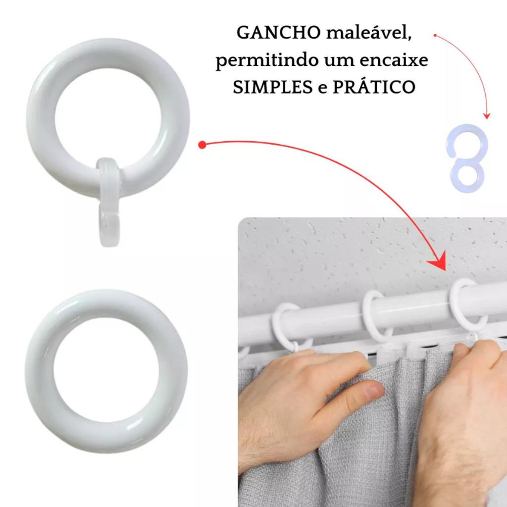 Argolas e Ganchos para Cortina de Varão 19mm Para Varão Fino Elegância e Praticidade Ótimo custo beneficio