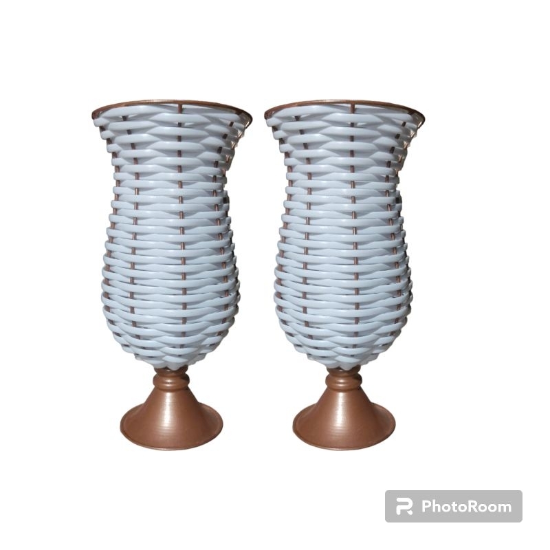 2 Vaso de mesa tipo taça dourada e branco 30cm