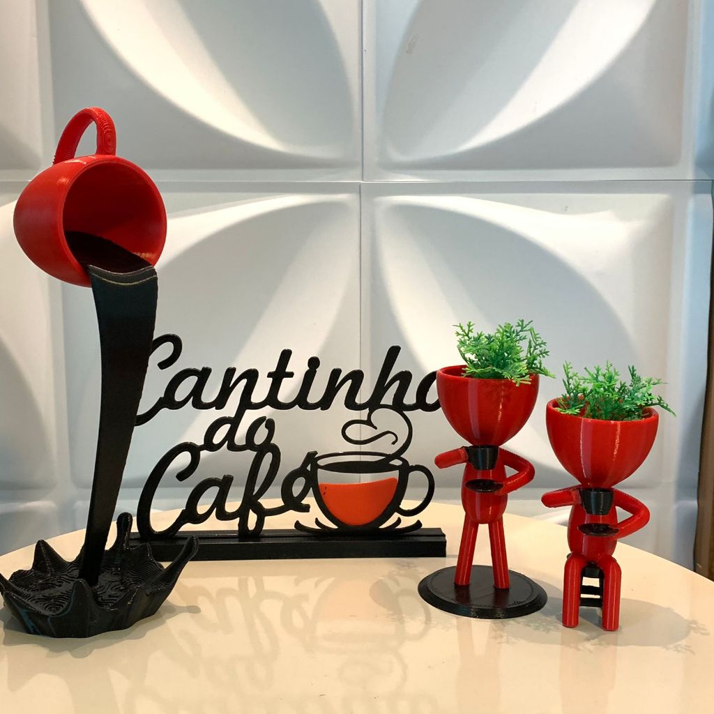 kit cantinho do café com xícara flutuante e bob com as plantas
