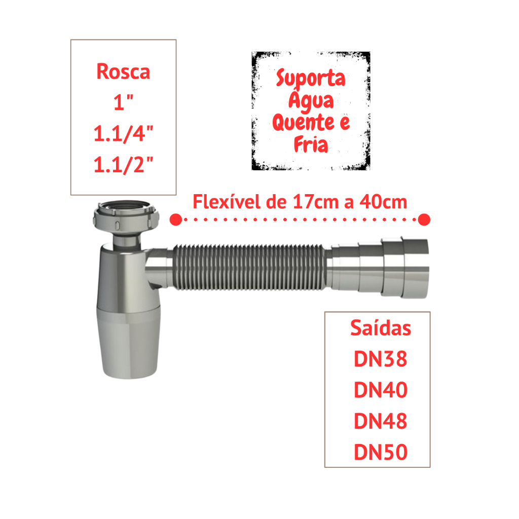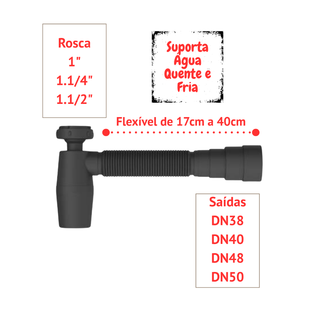Sifão Para Pia de Cozinha Copo Pia Banheiro Tanque Anti Odor Cromado Branco Preto