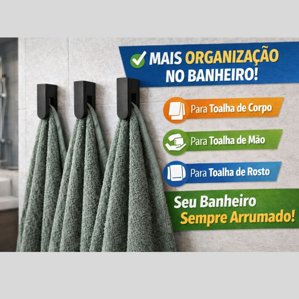 Kit Suporte Para Toalha Banho Organizador Banheiro Cabide Toalha Mão Toalha Rosto