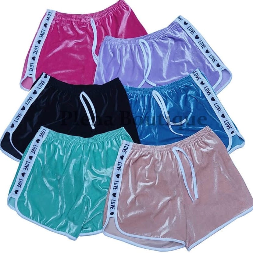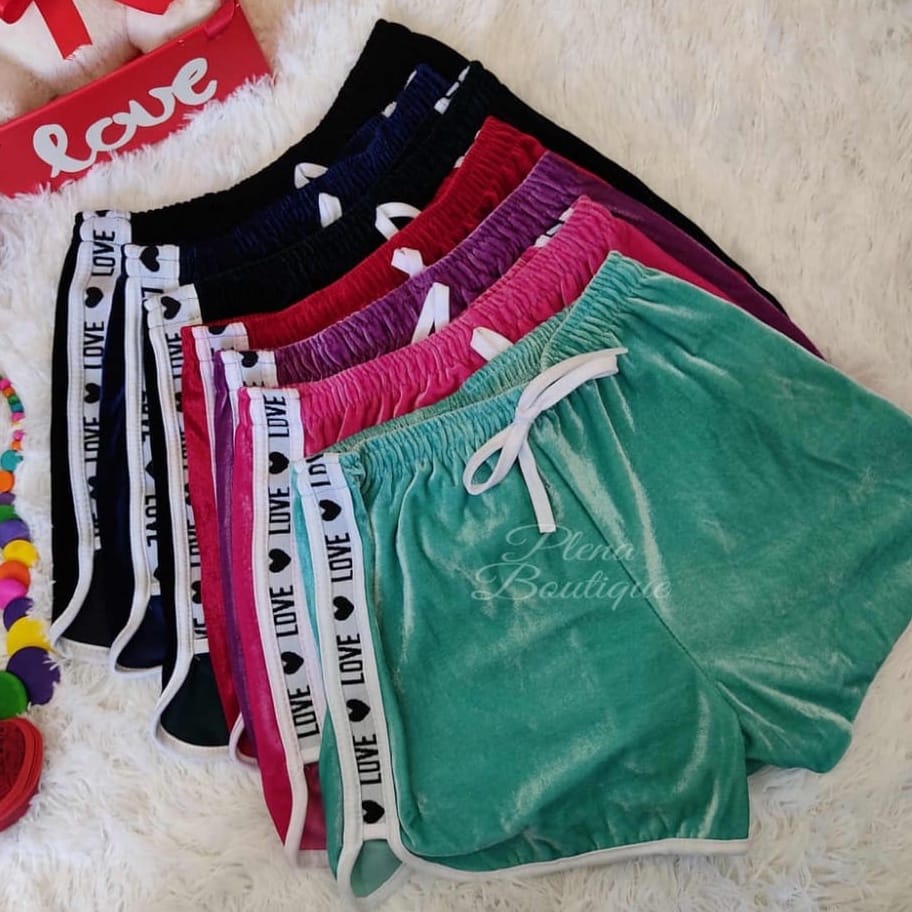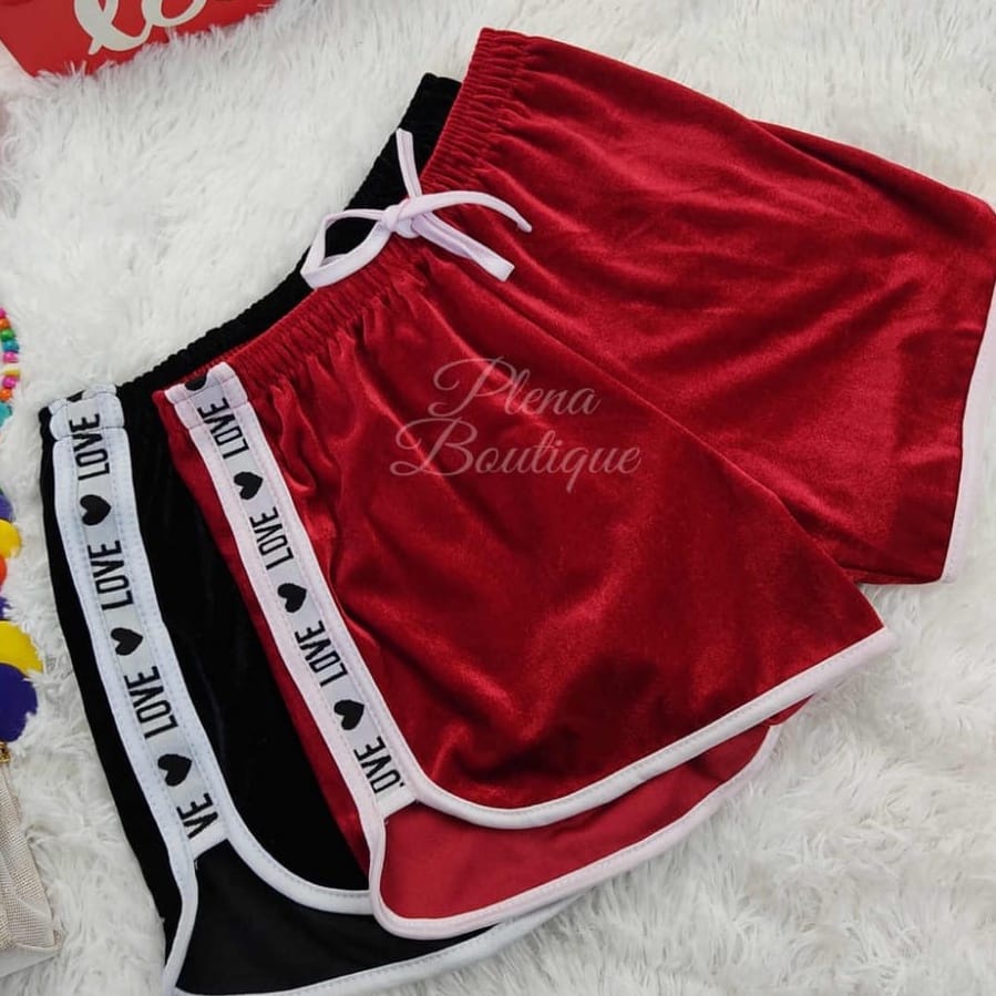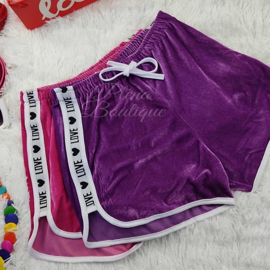 KIT 2 SHORTS FEMININO VELUDO LOVE TENDENCIA VERÂO CASUAL