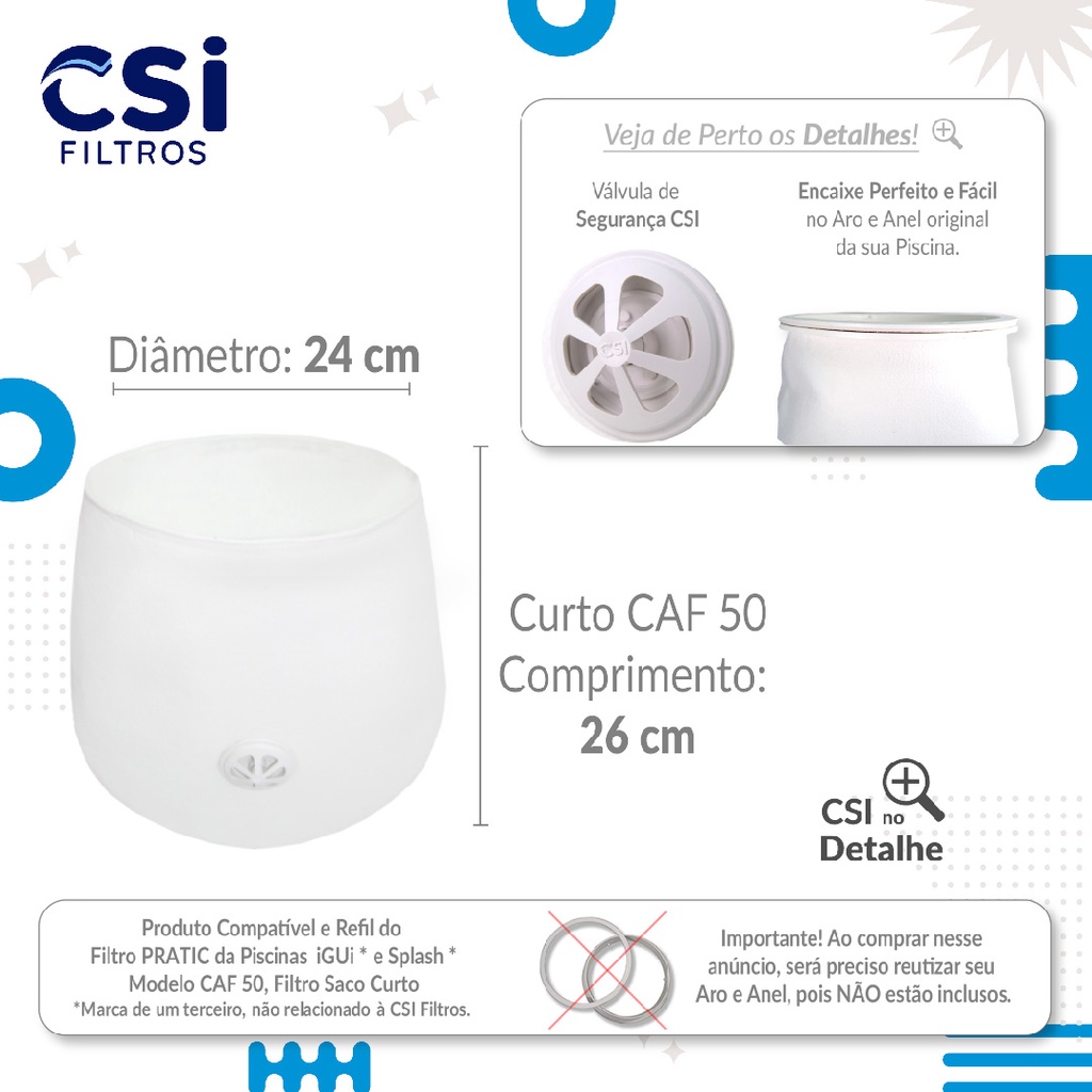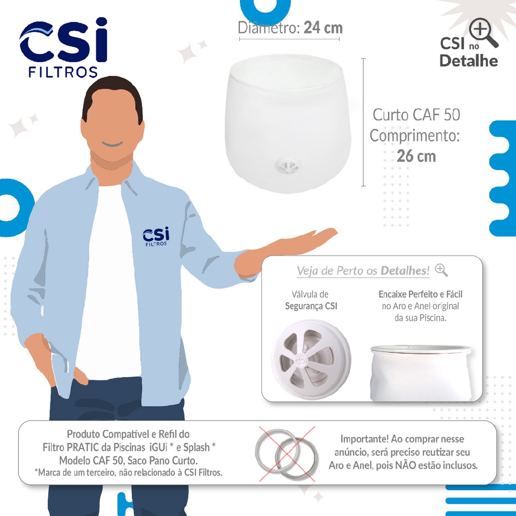Filtro para Piscina Prático CSI - Saco de Pano Curto Refil Compatível CAF 50