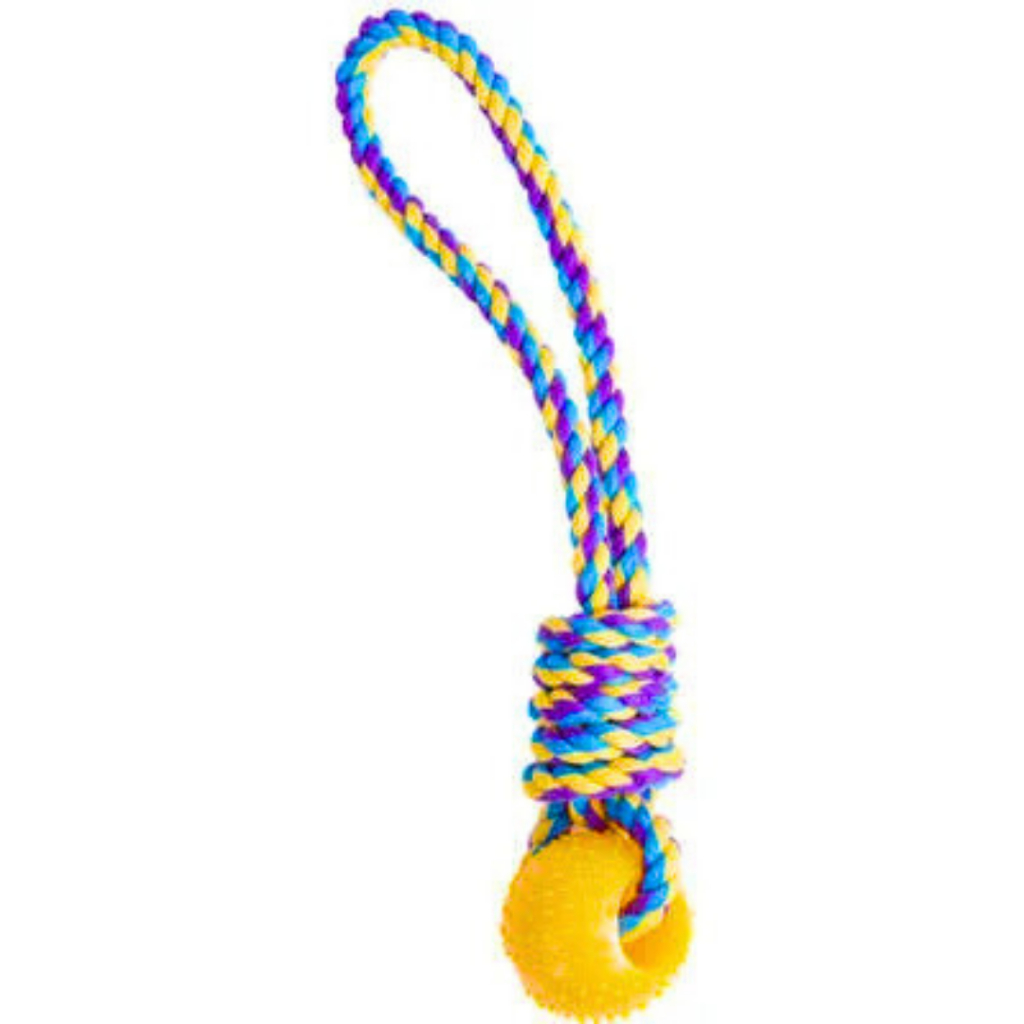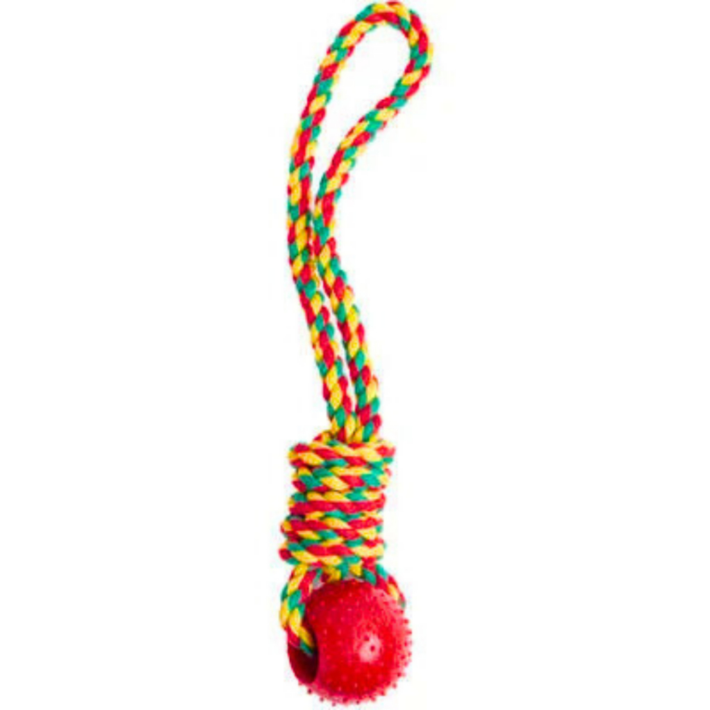 BRINQUEDO MORDEDOR PARA CACHORROS CÃES CORDA COM BOLA E PUXADOR