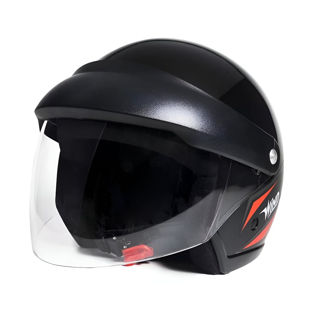 Capacete Aberto Taurus Wind Visor Preto Brilhante E Vermelho com viseira acoplada