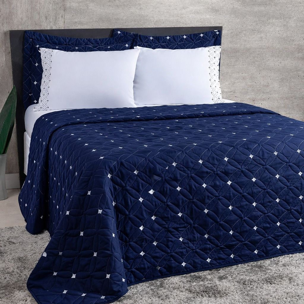 Kit Cobre Leito CASAL QUEEN SUPER KING COM JOGO DE LENÇOL Bordado 06 Peças IDEALE