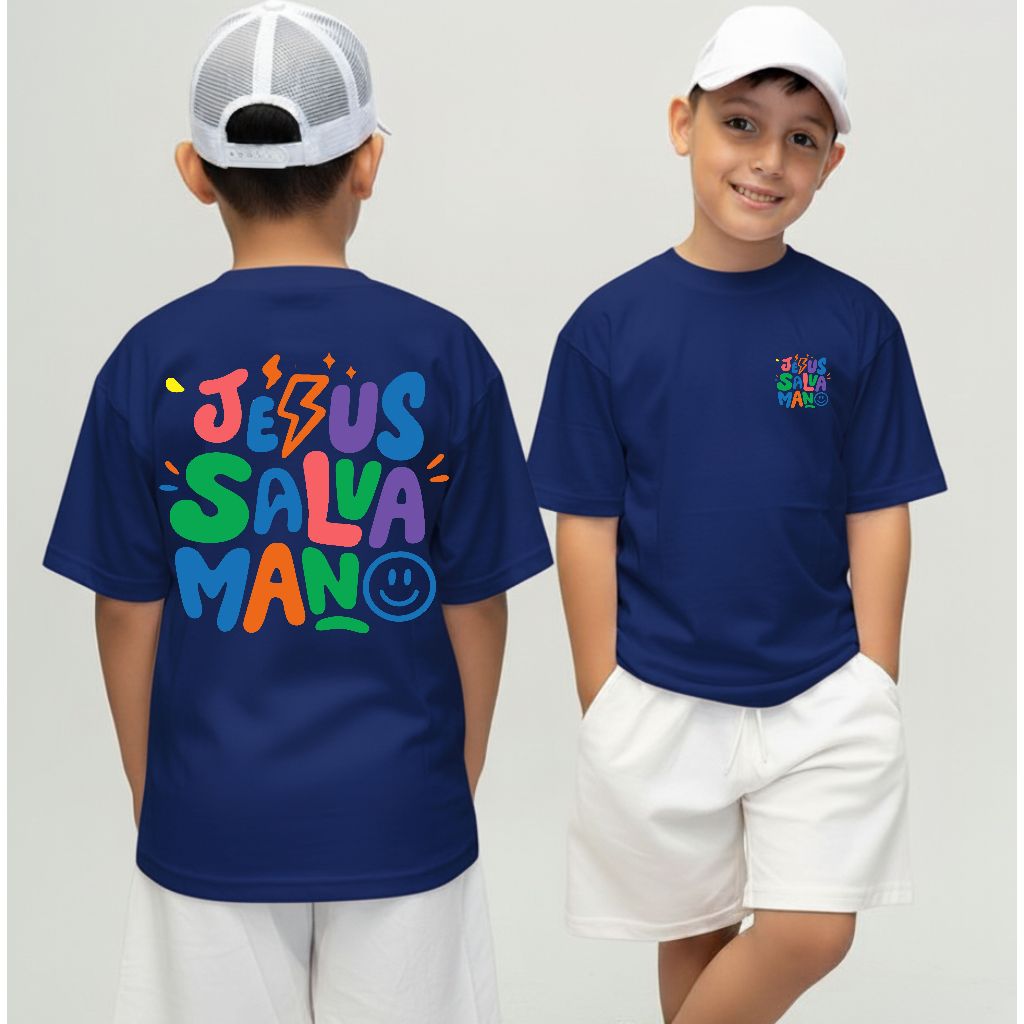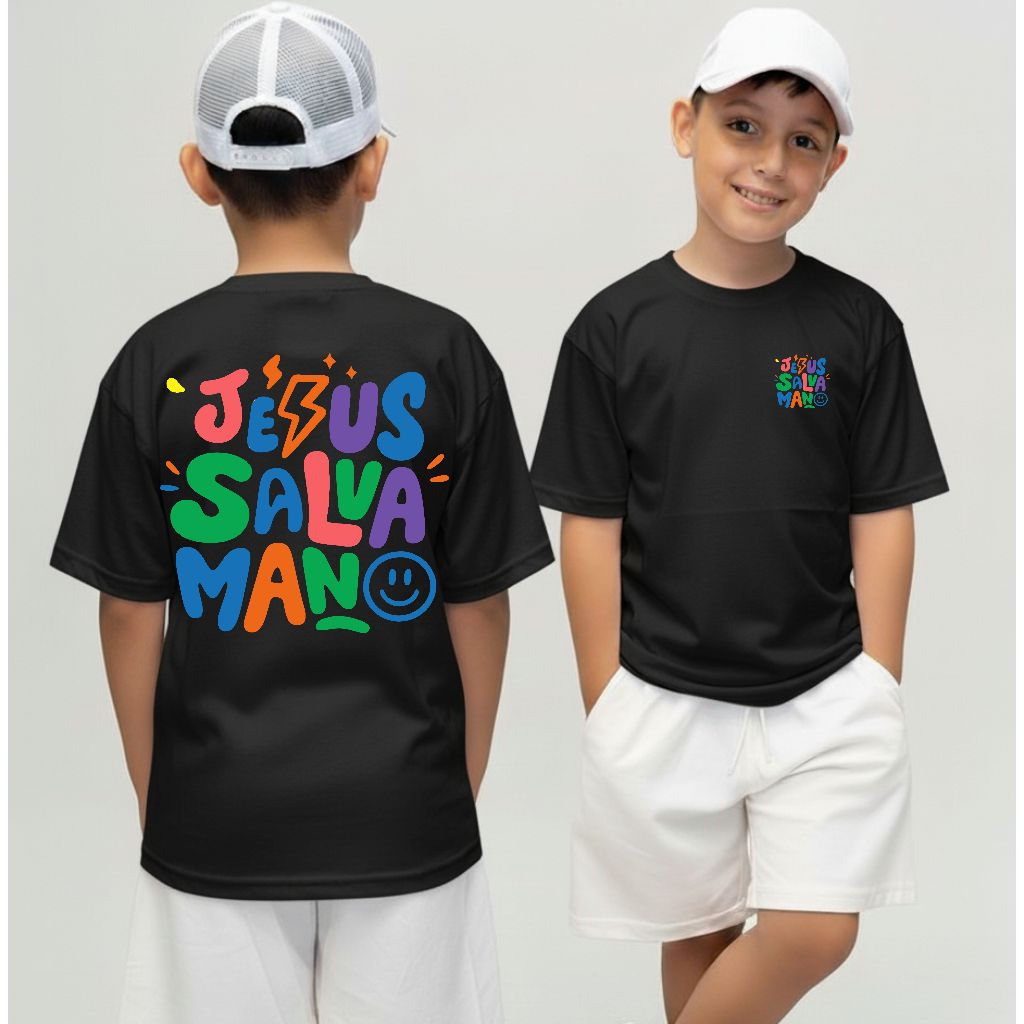 Camiseta Infantil Malha 30.1 100% Algodão Juvenil Estilosa Camisa Religiosa Jesus Cristo Salva Mano