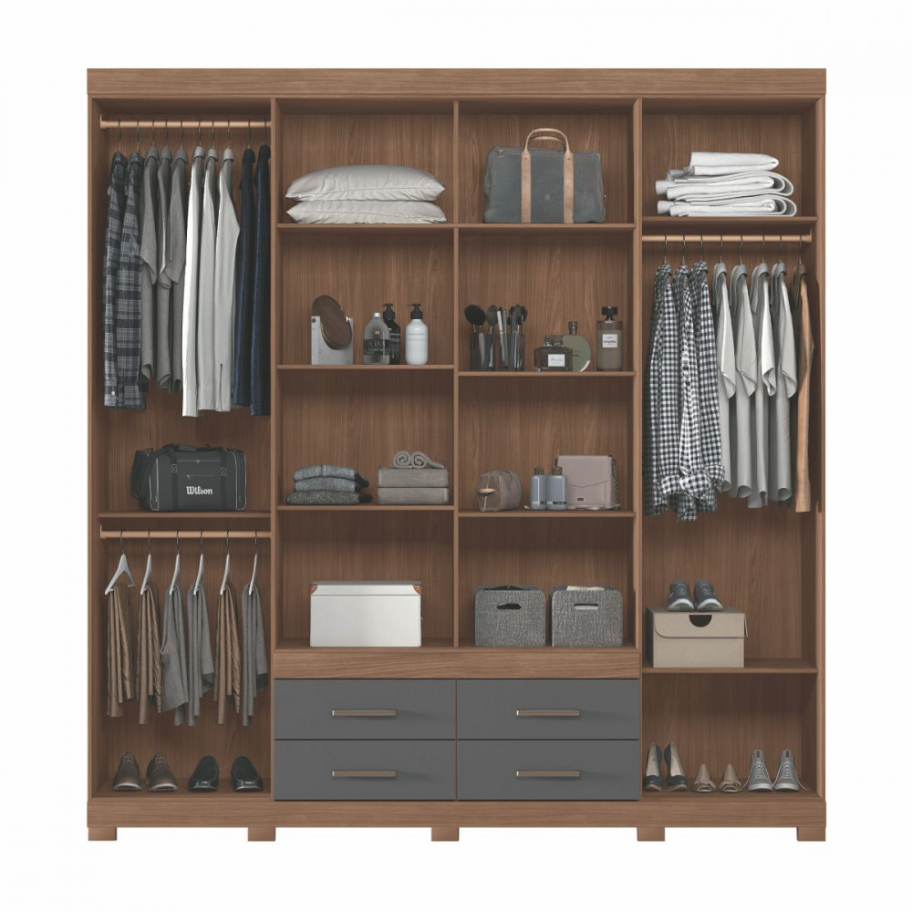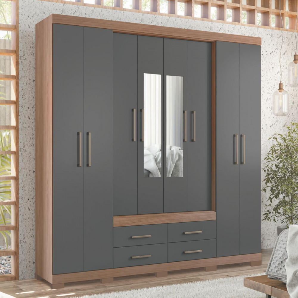 Guarda Roupa Casal Napoles 8 Portas 4 Gavetas Jatoba Grafite Com Espelho Santos Andirá
