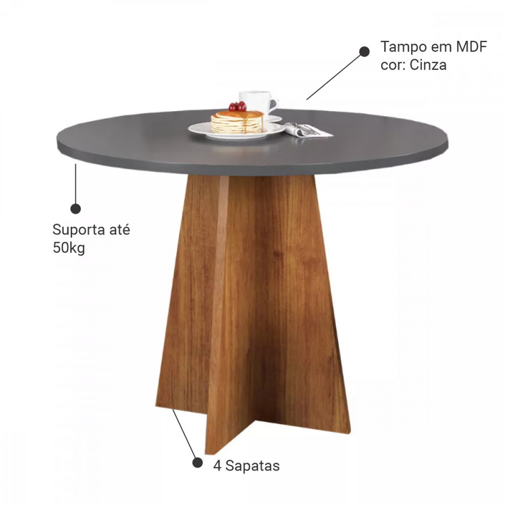 Mesa de Jantar Slin Redonda 90x90 Mel com Cinza Viero