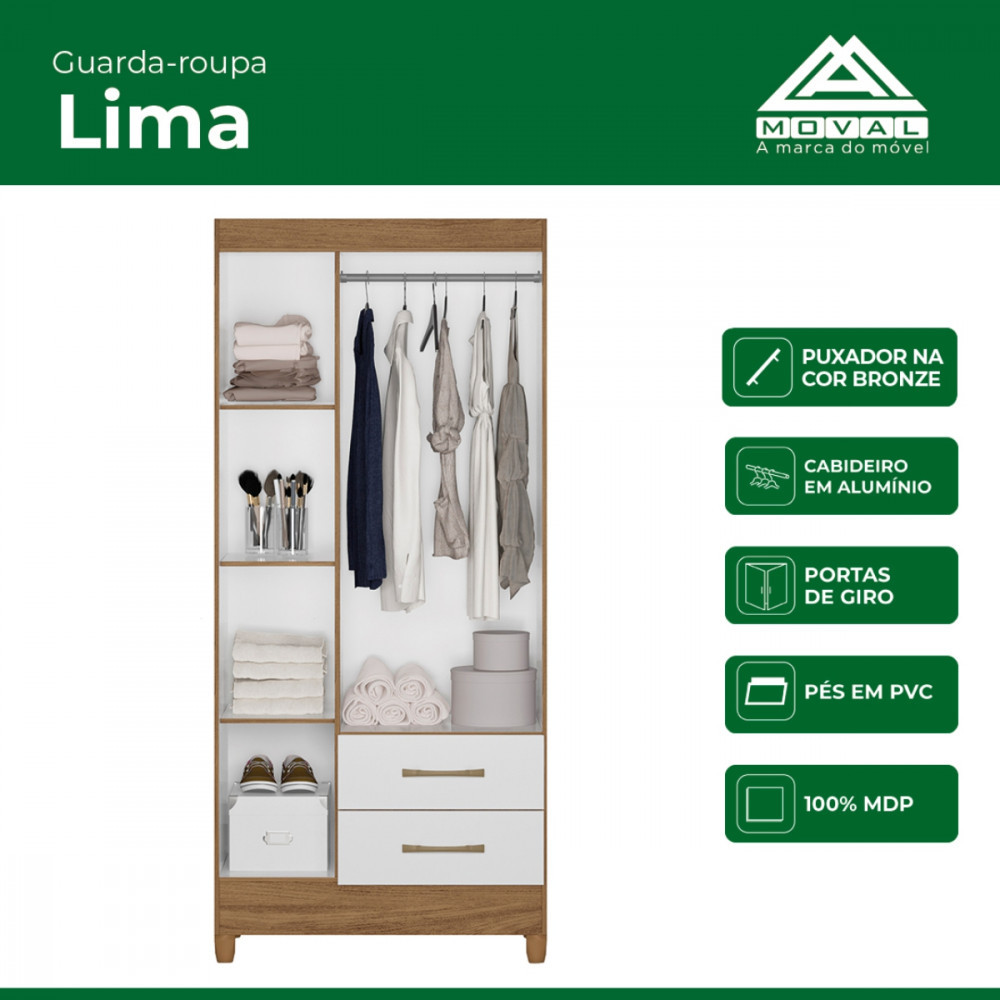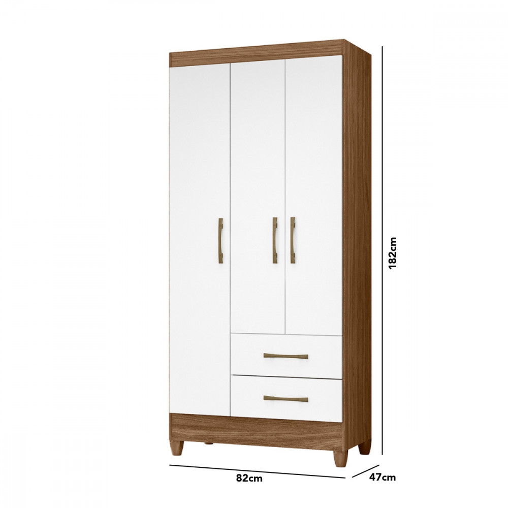 Guarda Roupa Solteiro Lima 3 Portas 2 Gavetas Naturale Branco Moval