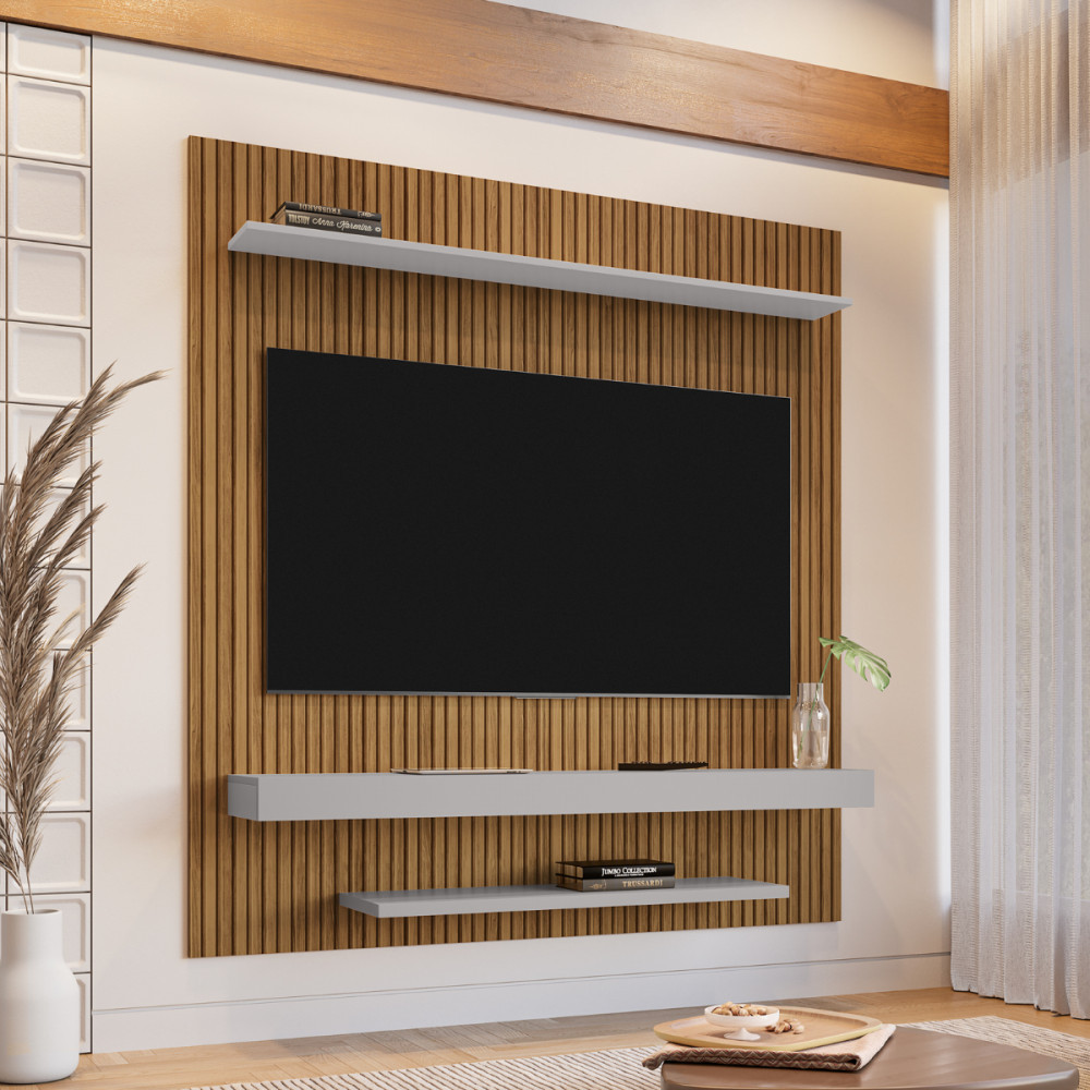 Painel para TV de até 65 Polegadas Leme Pintura Ripado Cinamomo Off White Bechara