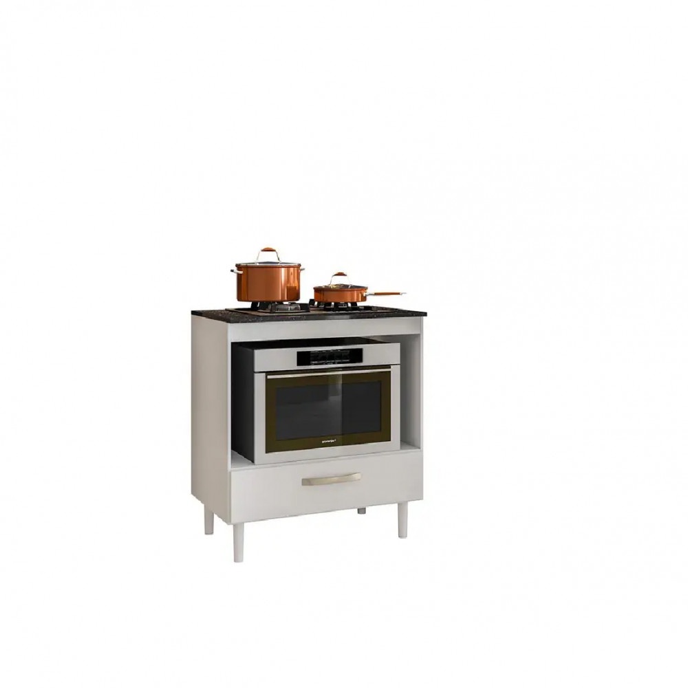 Balcão Para Cooktop 5 Bocas e 4 Bocas 80cm 1 Gaveta Com 1 Gaveta Branco Nicioli