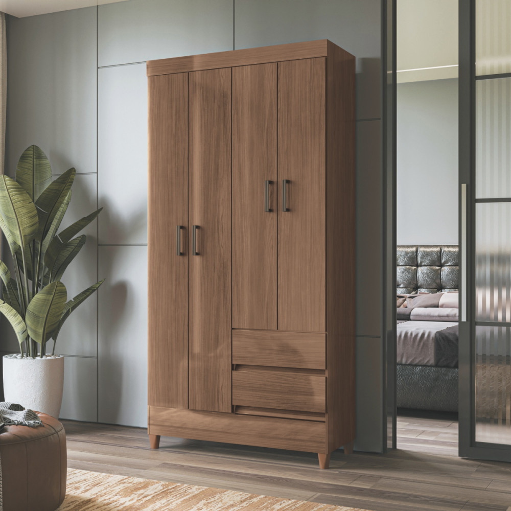 Guarda Roupa Solteiro com Pés 4 Portas 2 Gavetas Jequitiba New Opção
