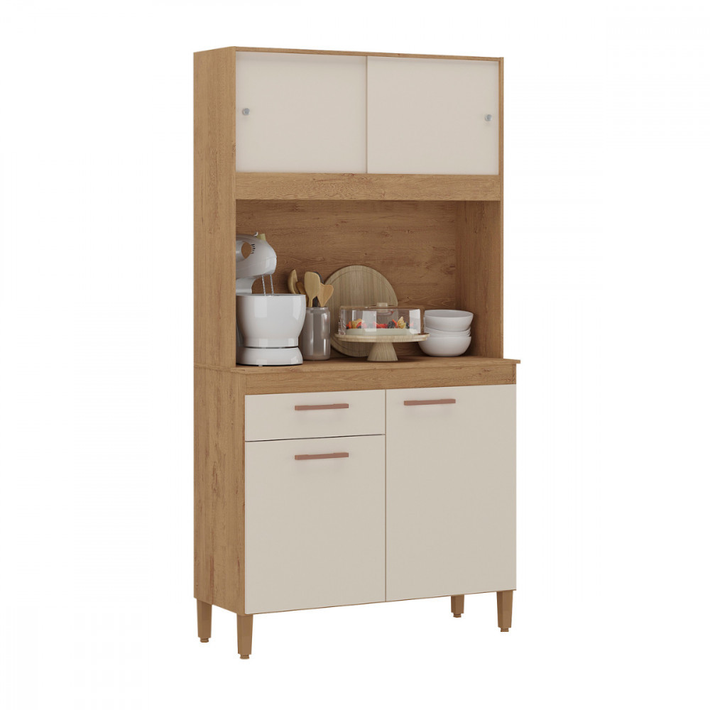 Cozinha Compacta Ceara 4 Portas 1 Gaveta Canelato com Off White Atualle