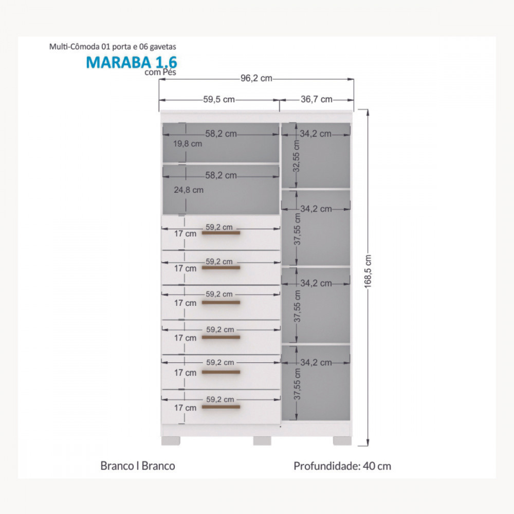 Multi Comoda Maraba 1 Porta 6 Gavetas Branco Santos Andira