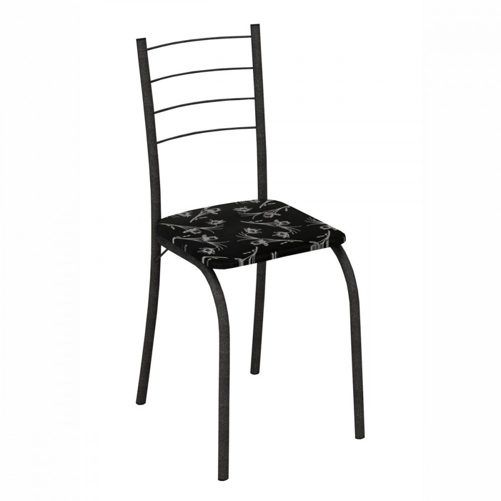 Conjunto de 4 Cadeiras Rio Martelado Grafite Assento Preto Lirio Teixeira