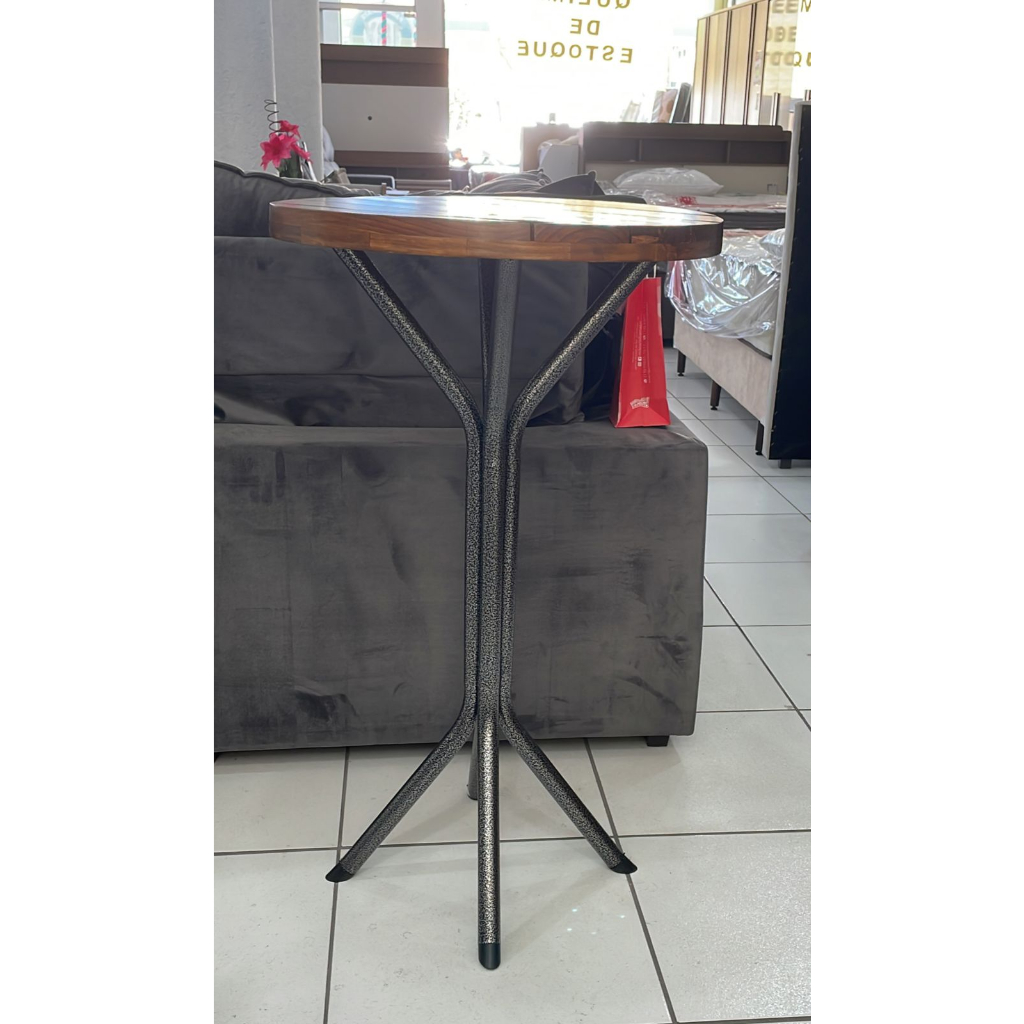 Mesa Bistrô Alta Cozinha Churrasqueira Bar Lanchonete Com Tampo Ripado 60x60 Martelado Grafite Holanda Teixeira