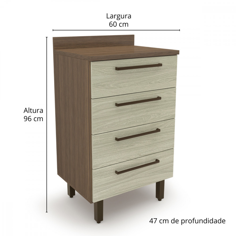 Balcao Evolution Plus 60cm 4 Gavetas Tannat/Legno Crema Batrol